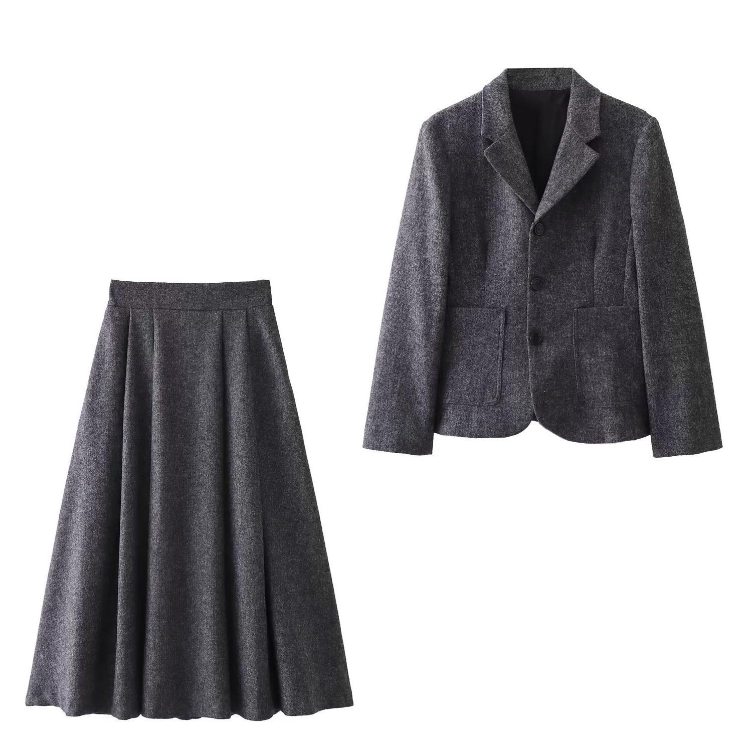 TAOP&ZA早秋新款女装混纺西装外套+迷笛半身裙8454565 8878565