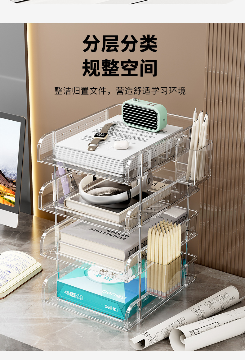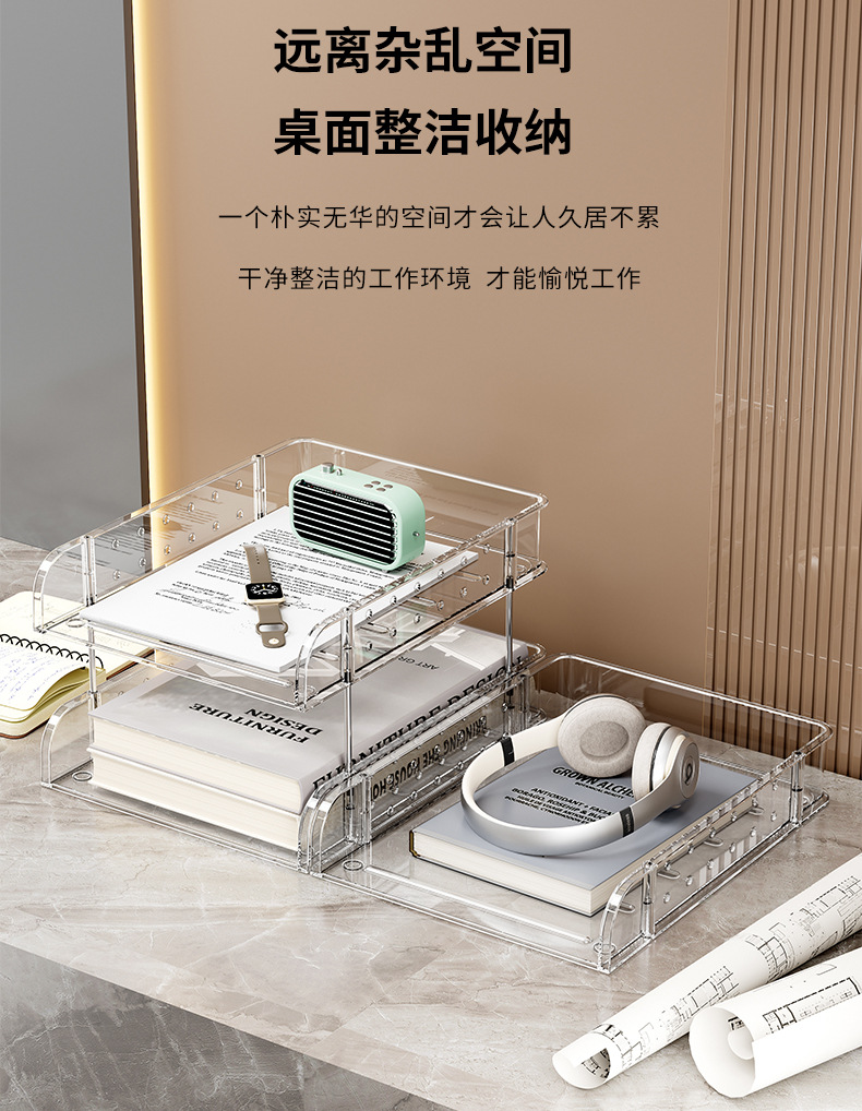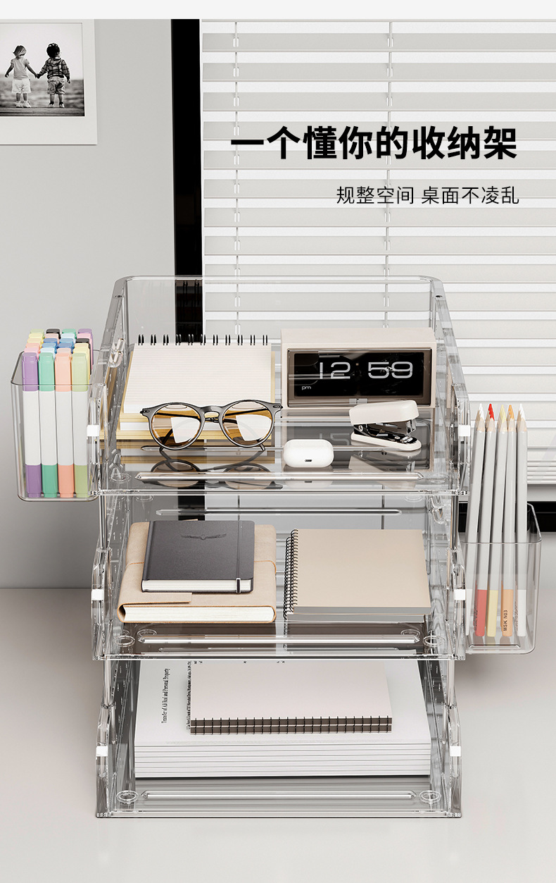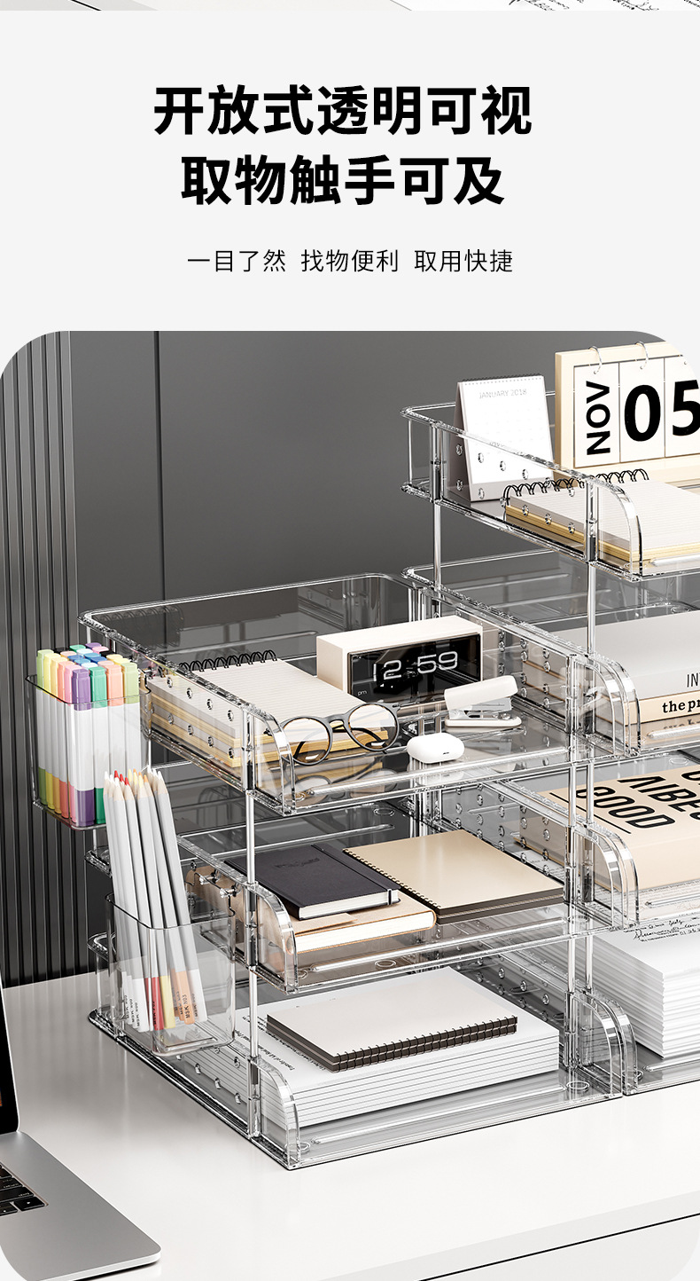 デスクトップファイルラック A4 紙オフィス多層収納ボックスアクリル本棚収納ラック情報コラム透明スタック