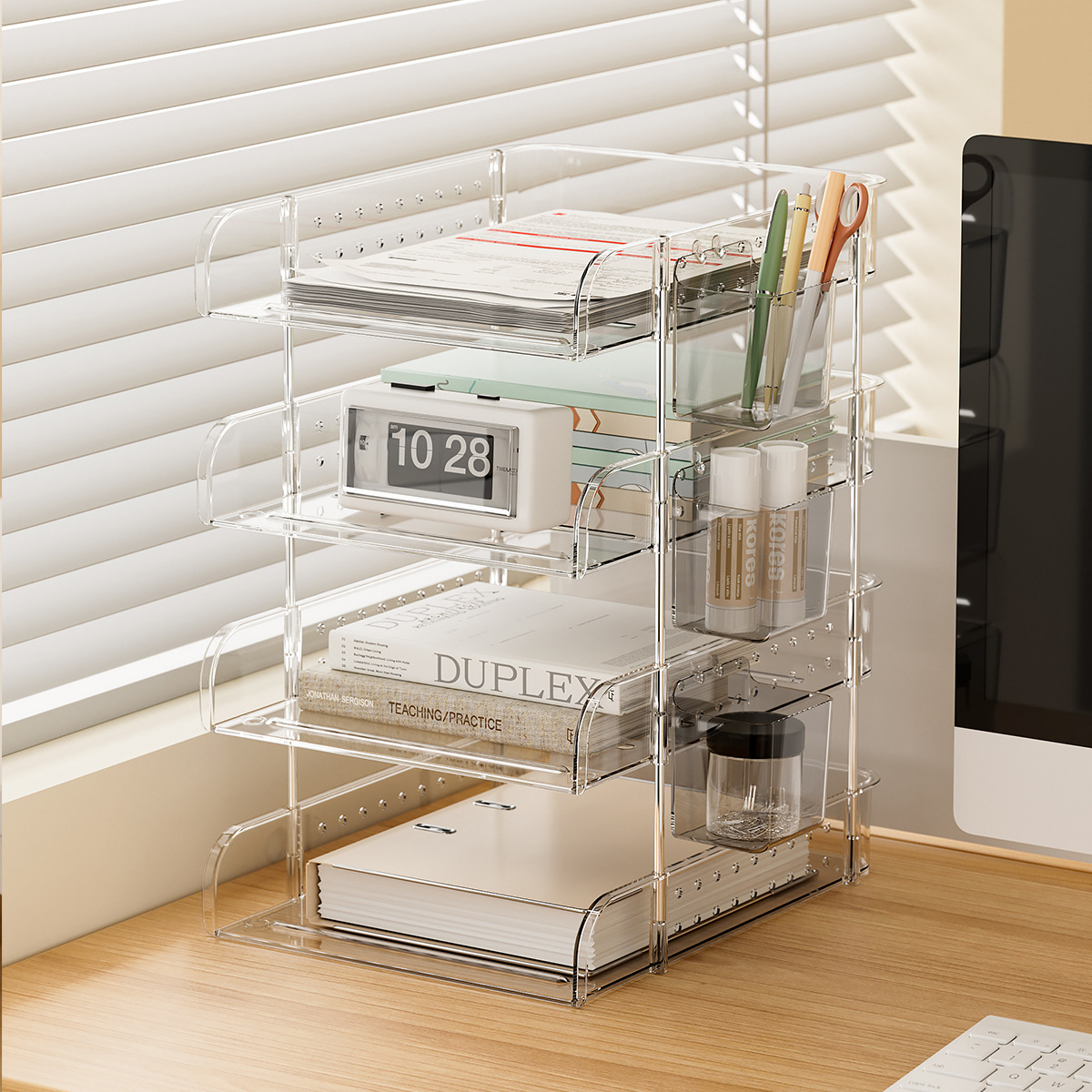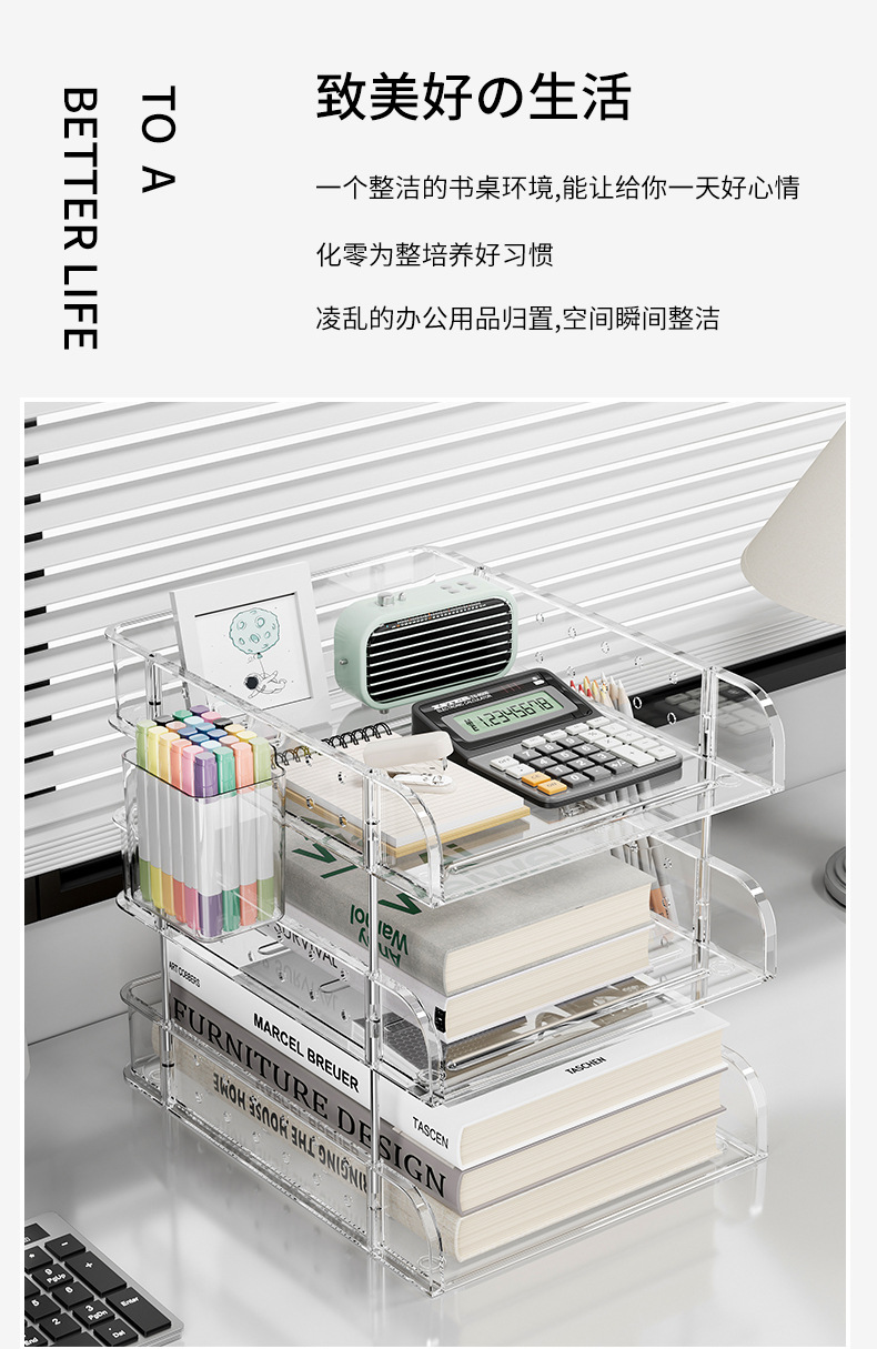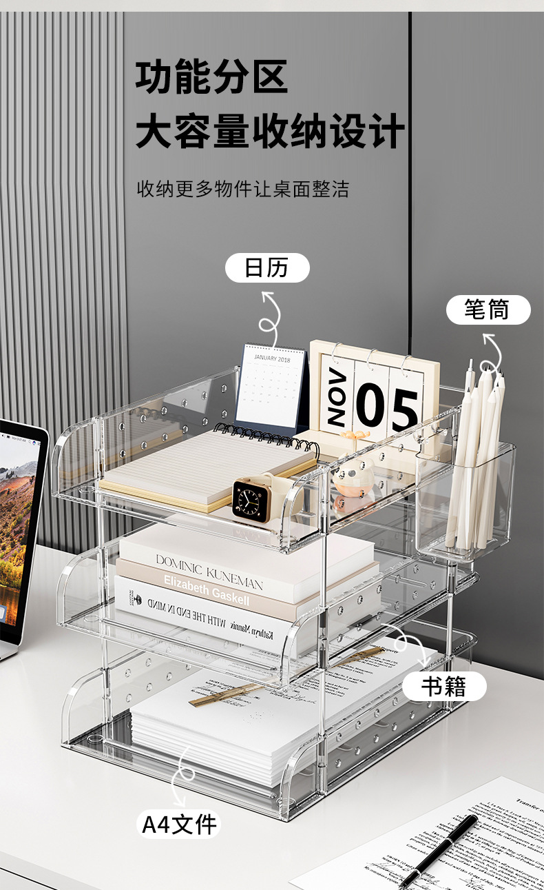 デスクトップファイルラック A4 紙オフィス多層収納ボックスアクリル本棚収納ラック情報コラム透明スタック