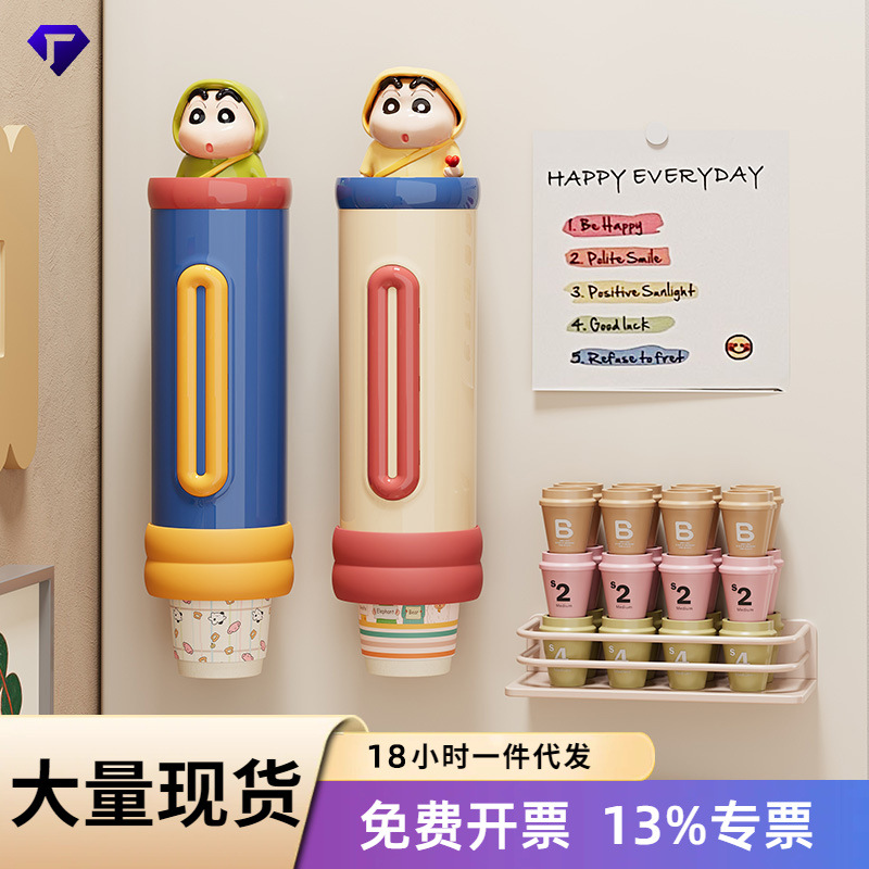 家用卡通取杯器一次性纸杯壁挂式落杯器免打孔杯架防尘杯子收纳架