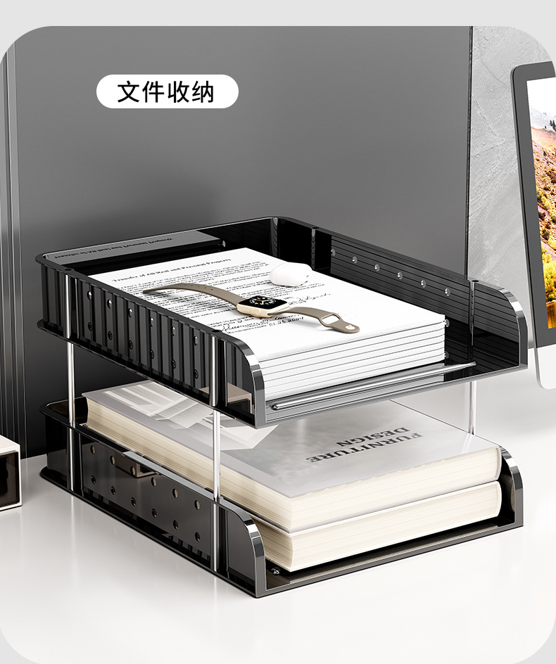 桌面文具整理收纳a4纸文件架办公室书桌资料分层pet洞洞板置物架