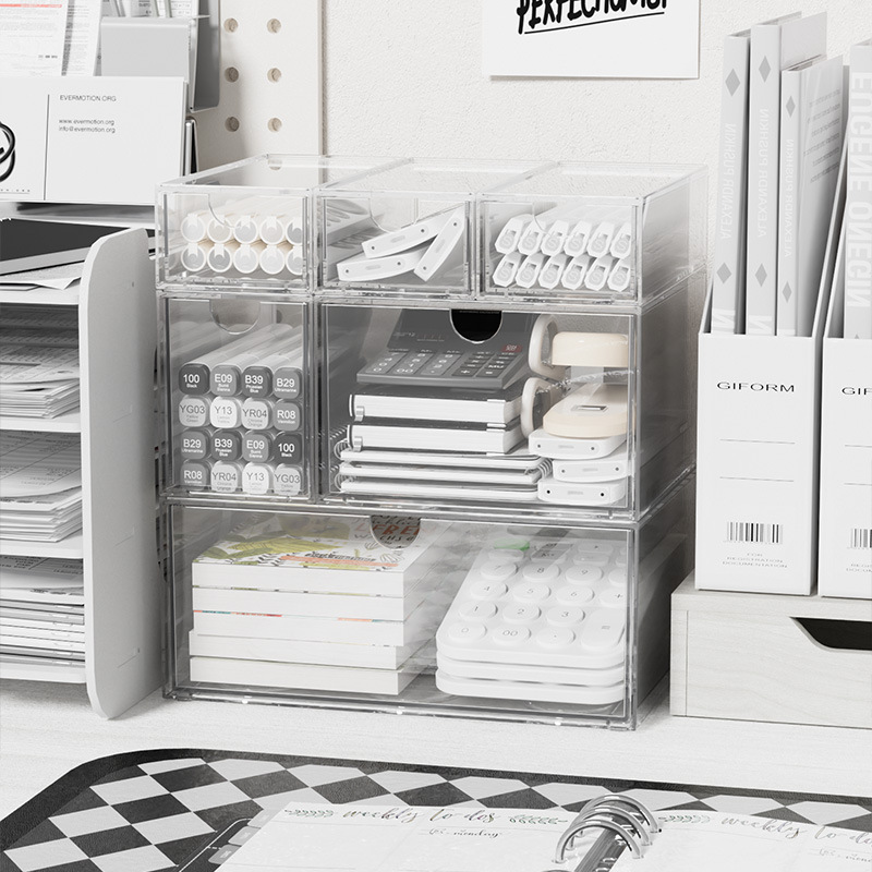 桌面化妆品面膜收纳盒亚克力透明抽屉式可叠加多层护肤收纳整理箱