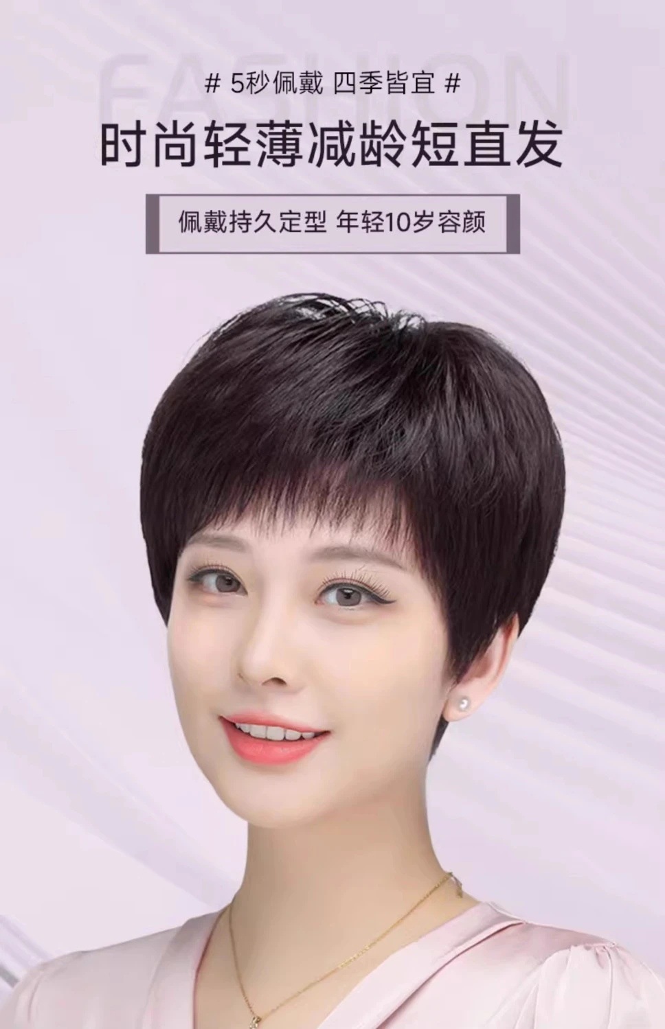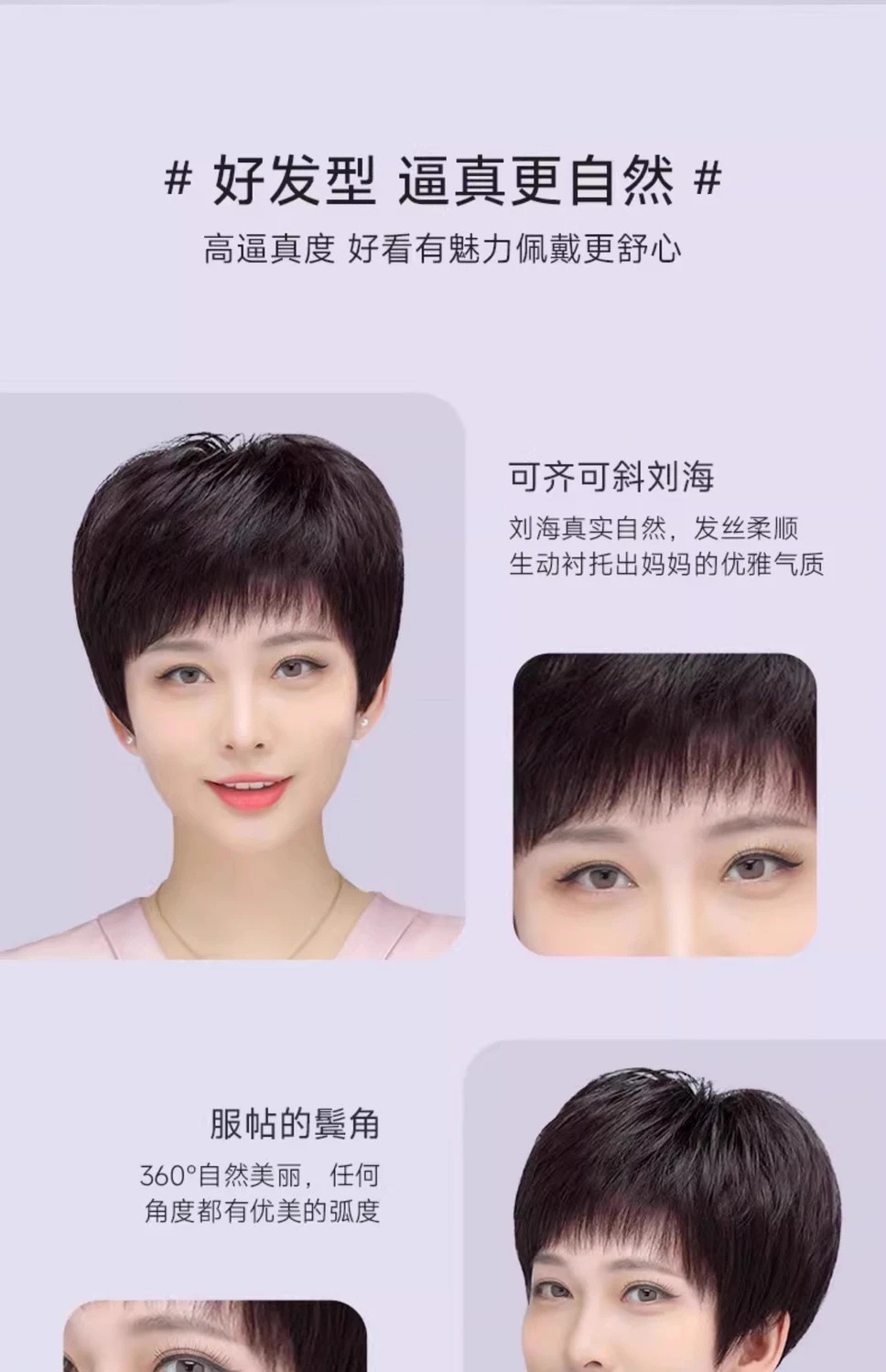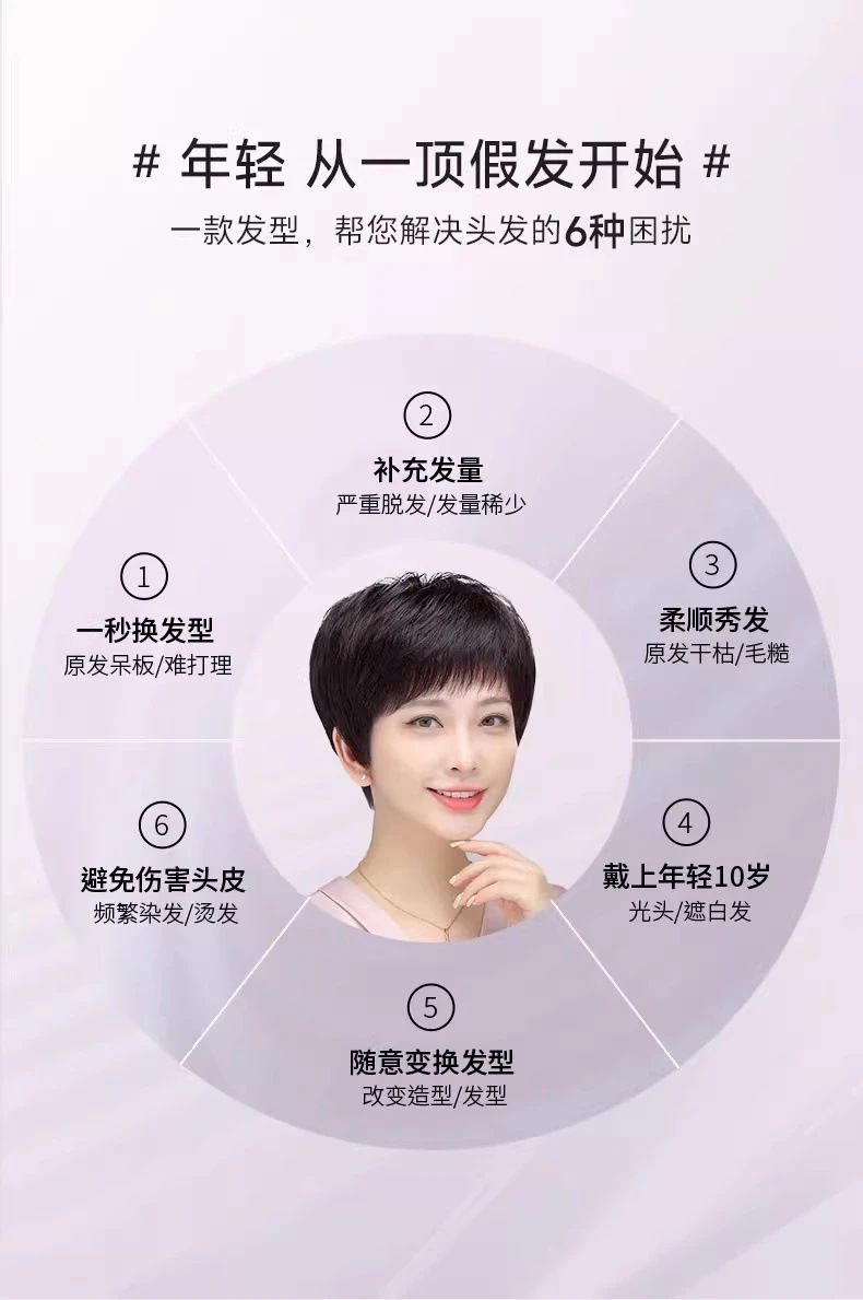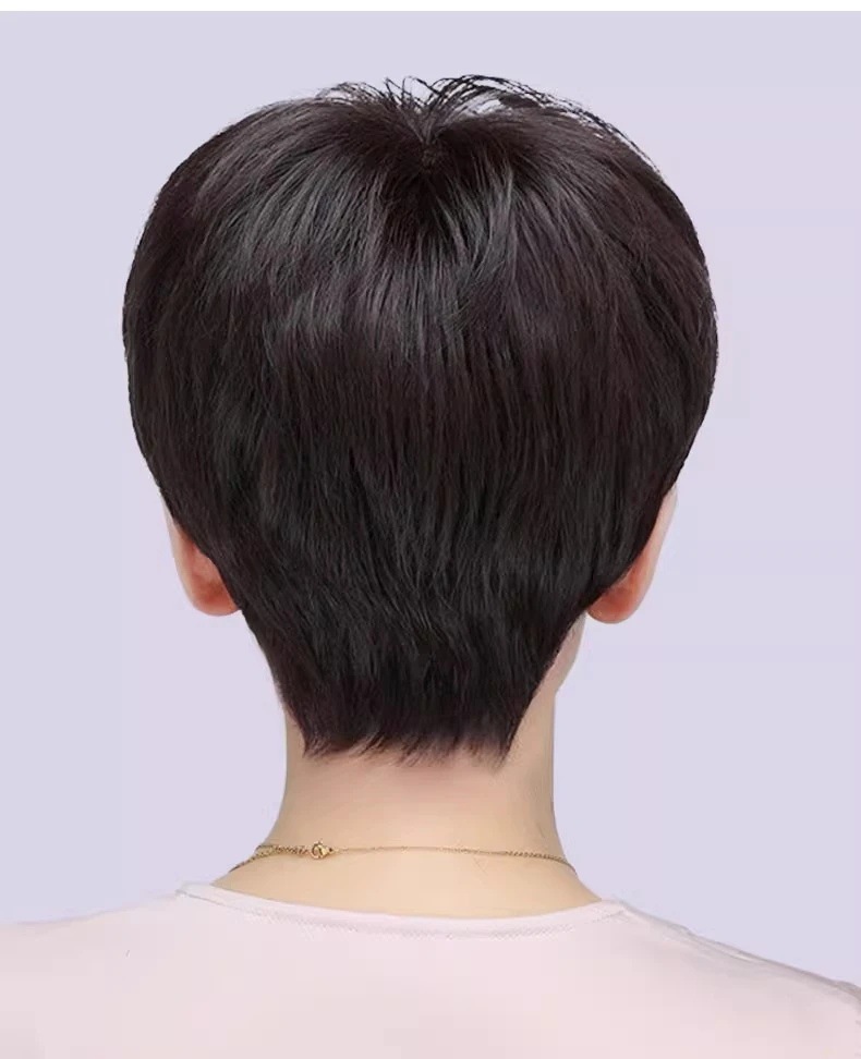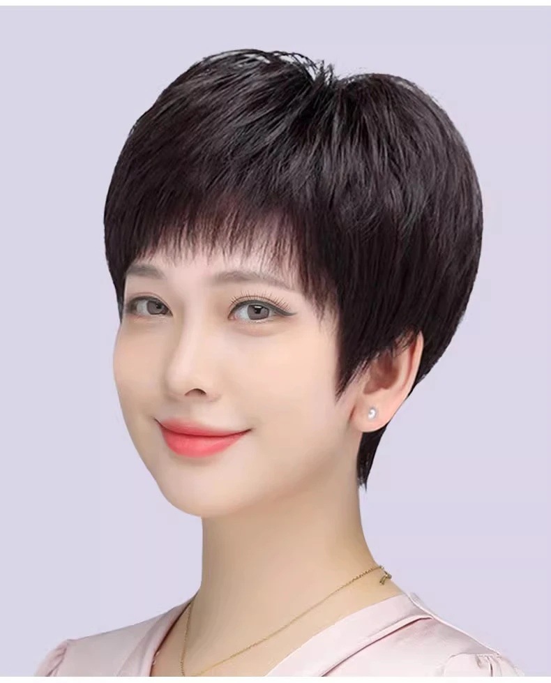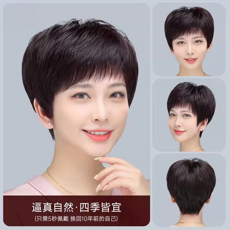 全手织全真发中老年短直发真发全头套假头发妈妈真人发丝发套透气