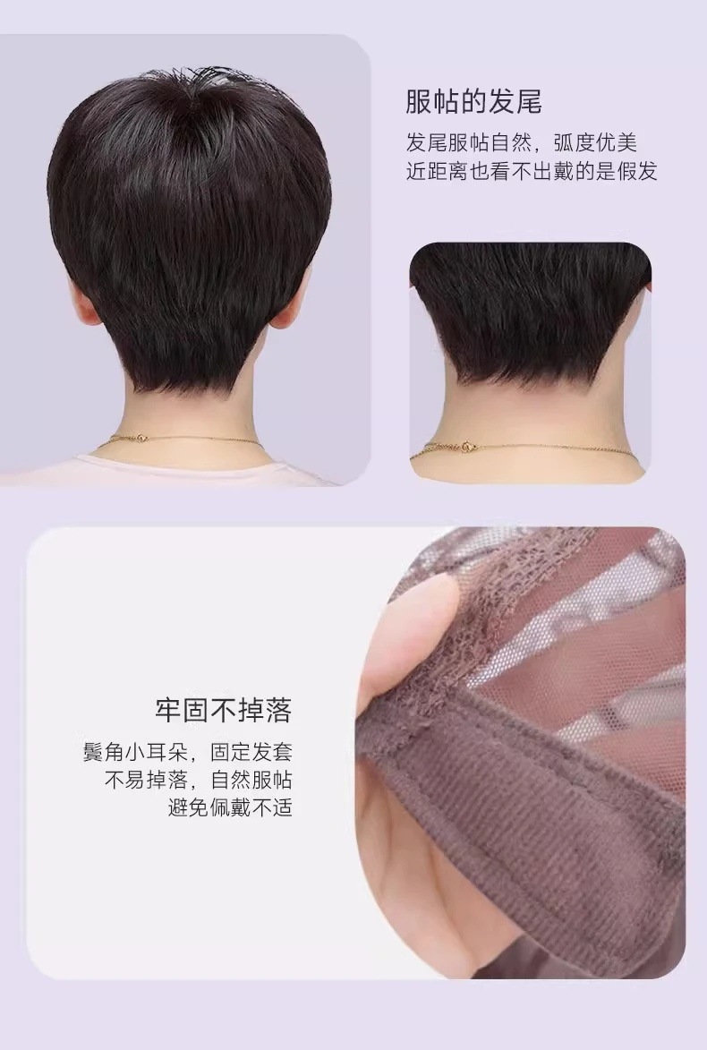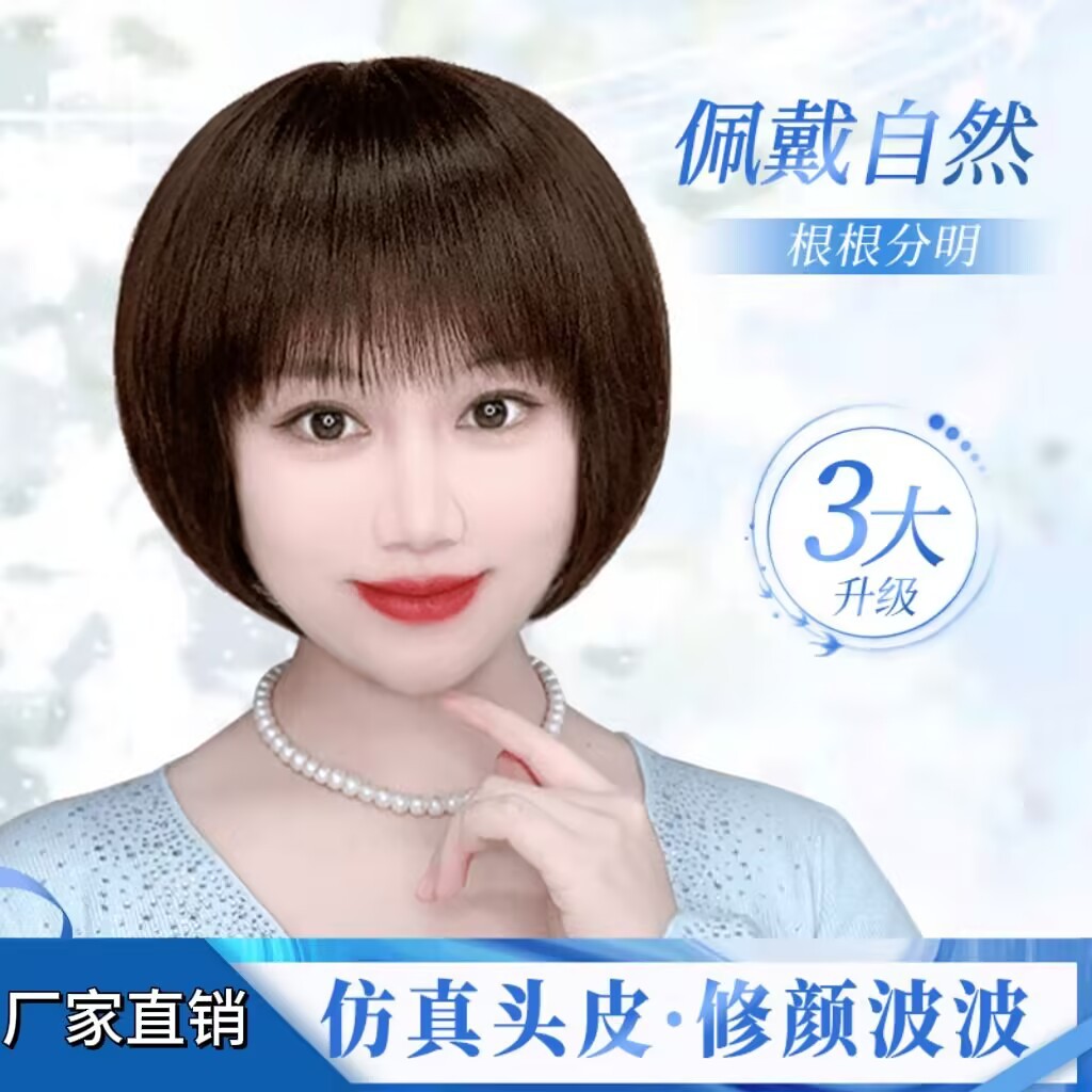 假发全头套女递针短发中老年女士真发头套全真妈妈假发隐形透气