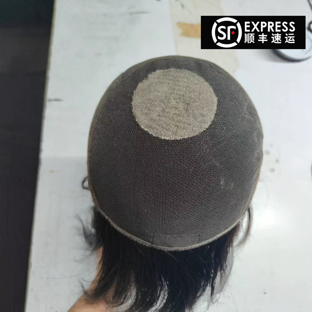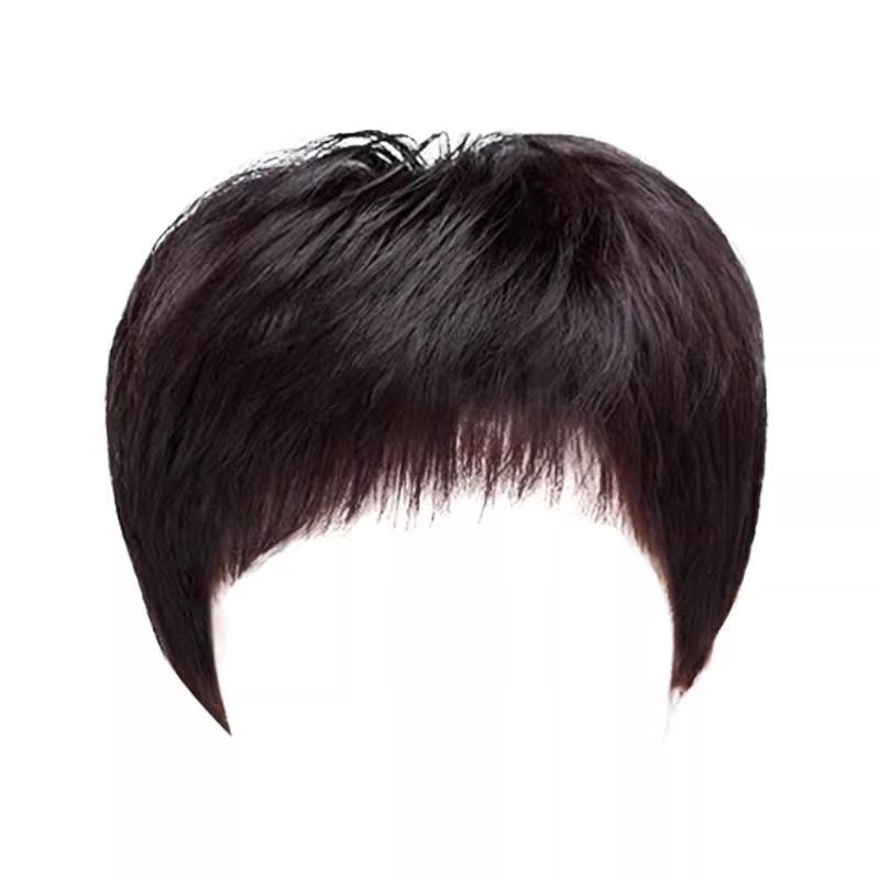 一本切波頭かつら女真髪全真人髪空気前髪減齢短髪レースかつらカバー