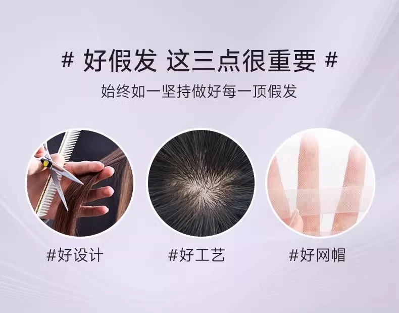 スイスネットのかつらの女性の頭の上で髪を補います。