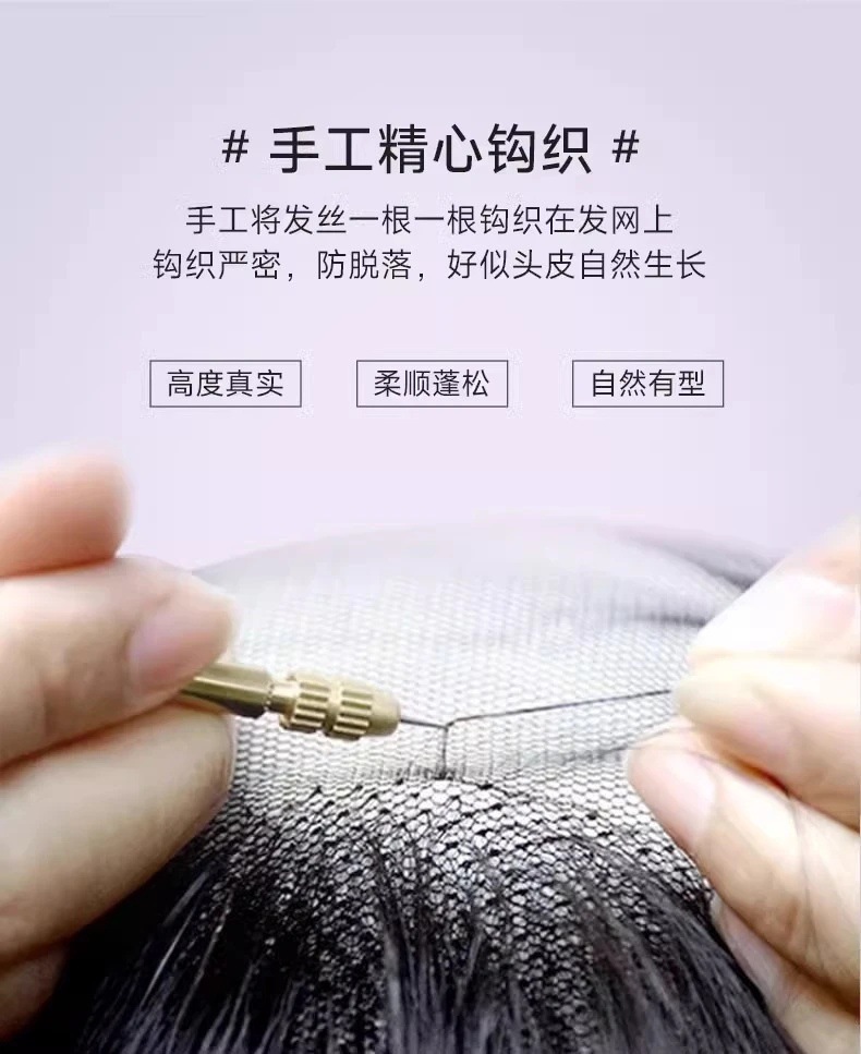 許昌ニードル編み込みヘアウィッグメーカー卸売通気性弾性メッシュ完全手織り人毛女性用ウィッグ