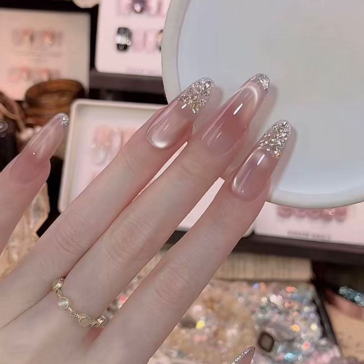 沪上千金穿戴甲爆闪显白纯欲风贴片手工高级感ins手工穿戴甲贴片