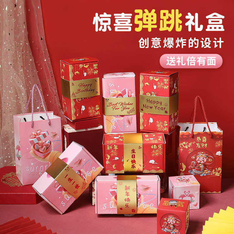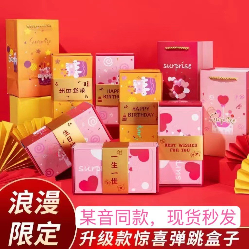 抖音同款惊喜弹跳红包盒子生日礼盒七夕红包情人节礼物折叠跳跳盒