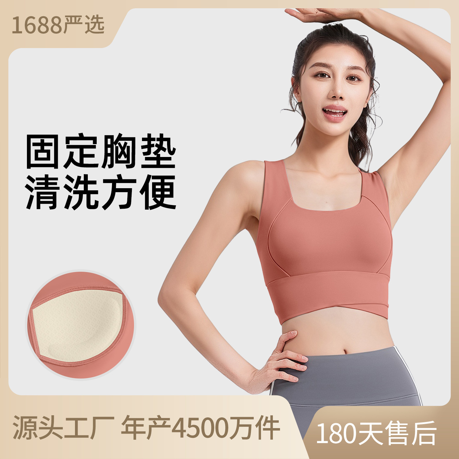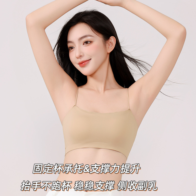 直播爆金固定胸パッド氷糸無痕ストラップベスト厚さ3cm細い肩ベルト大U美背下着春夏