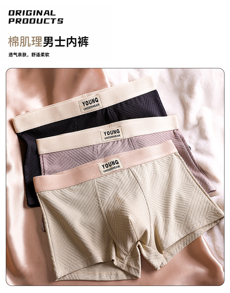 新款纯棉男士内裤平角裤男中腰纹理日系青年四角裤短裤头裤衩底裤