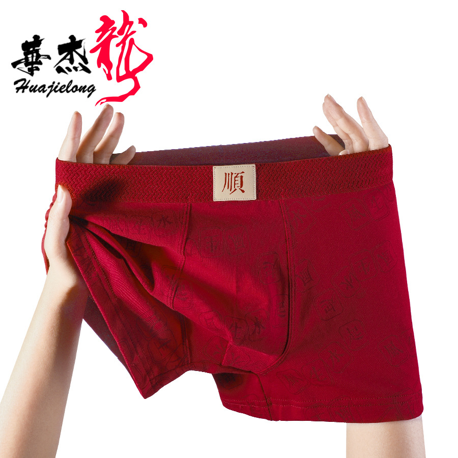 华杰龙大红新款本命年印花男士平角男内裤红色平角裤透气大码代发