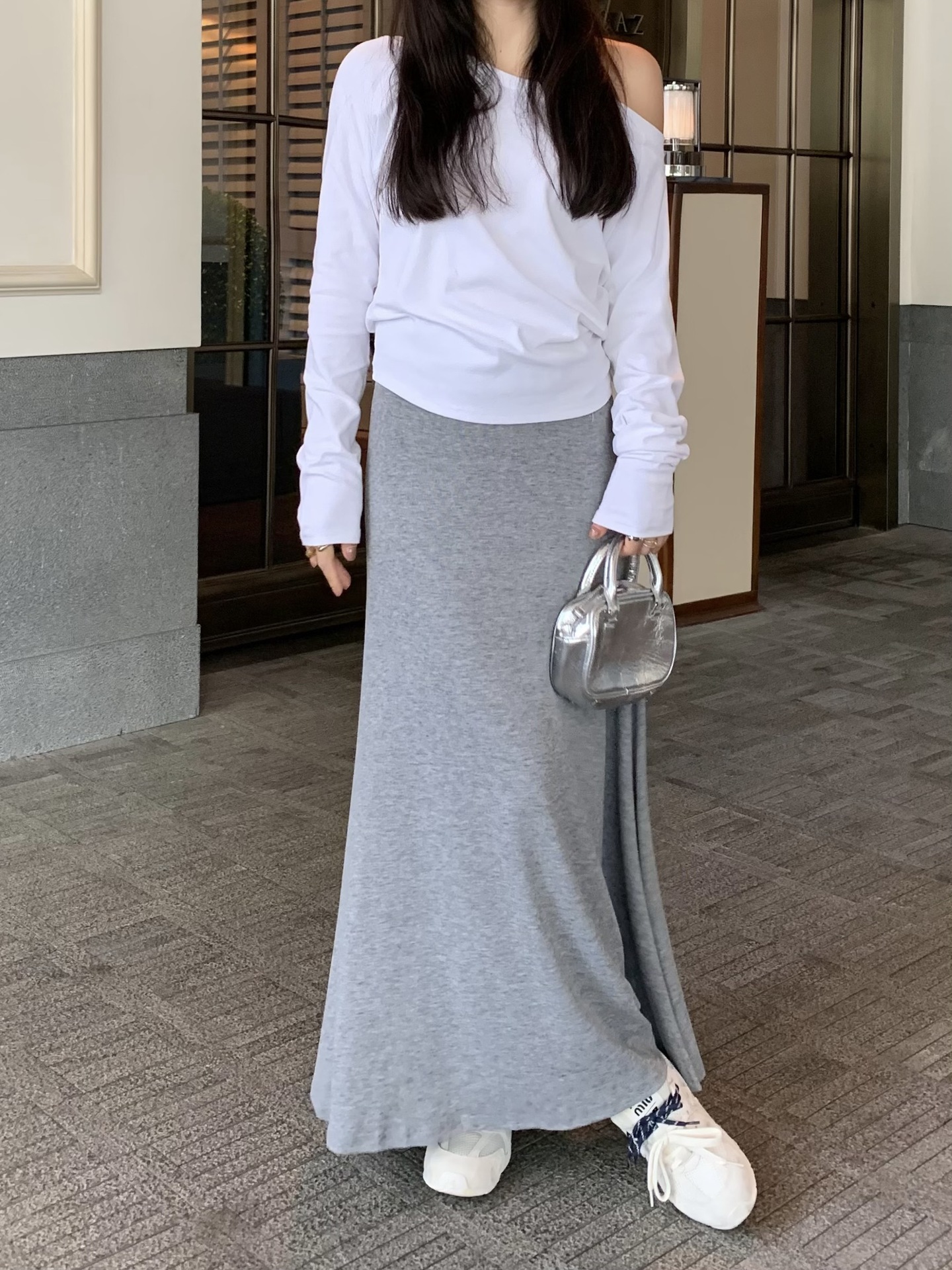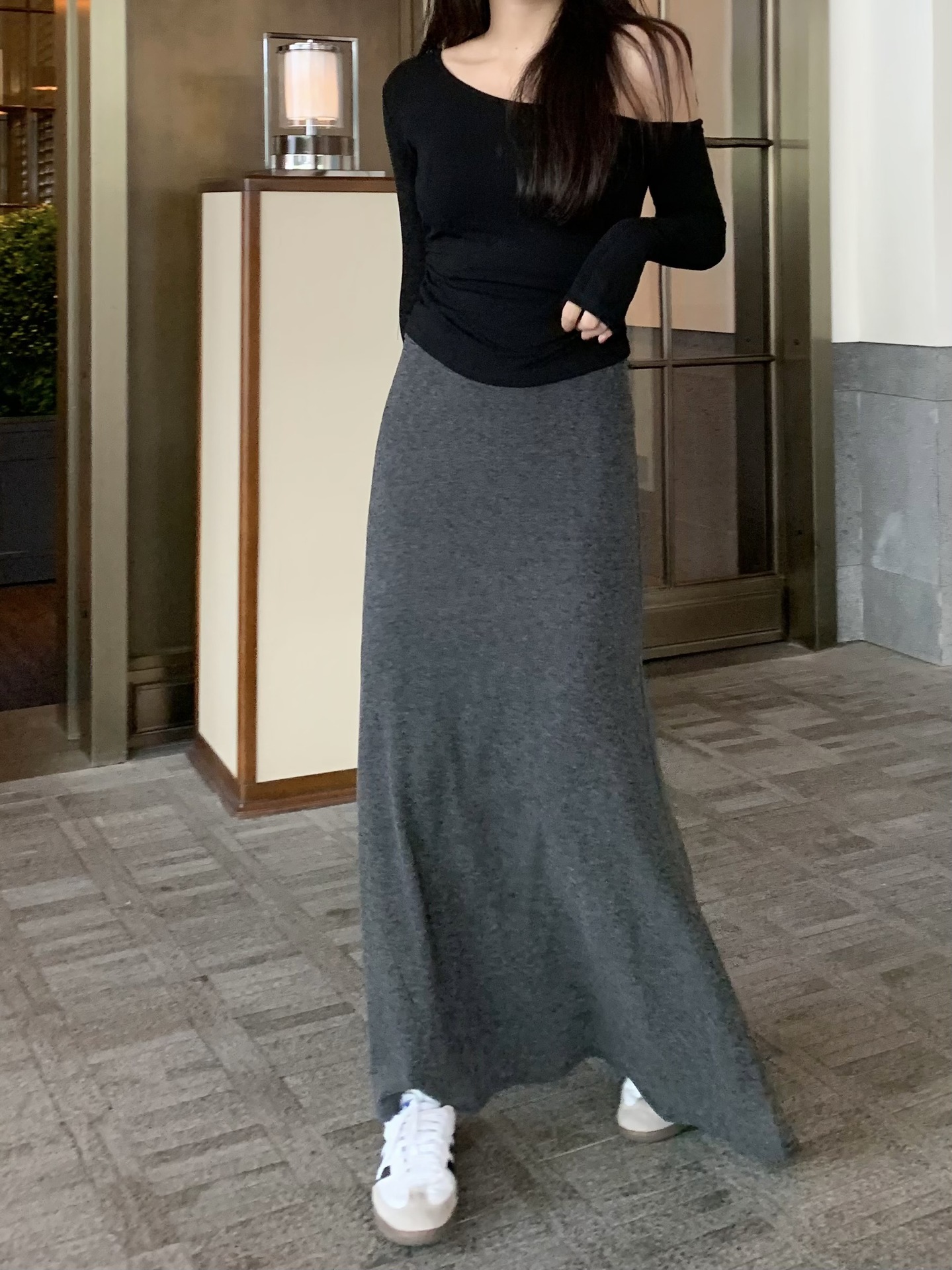 夏の灰色のヒップスカートのスカートの女性2025春秋の新型の復古はやせています。