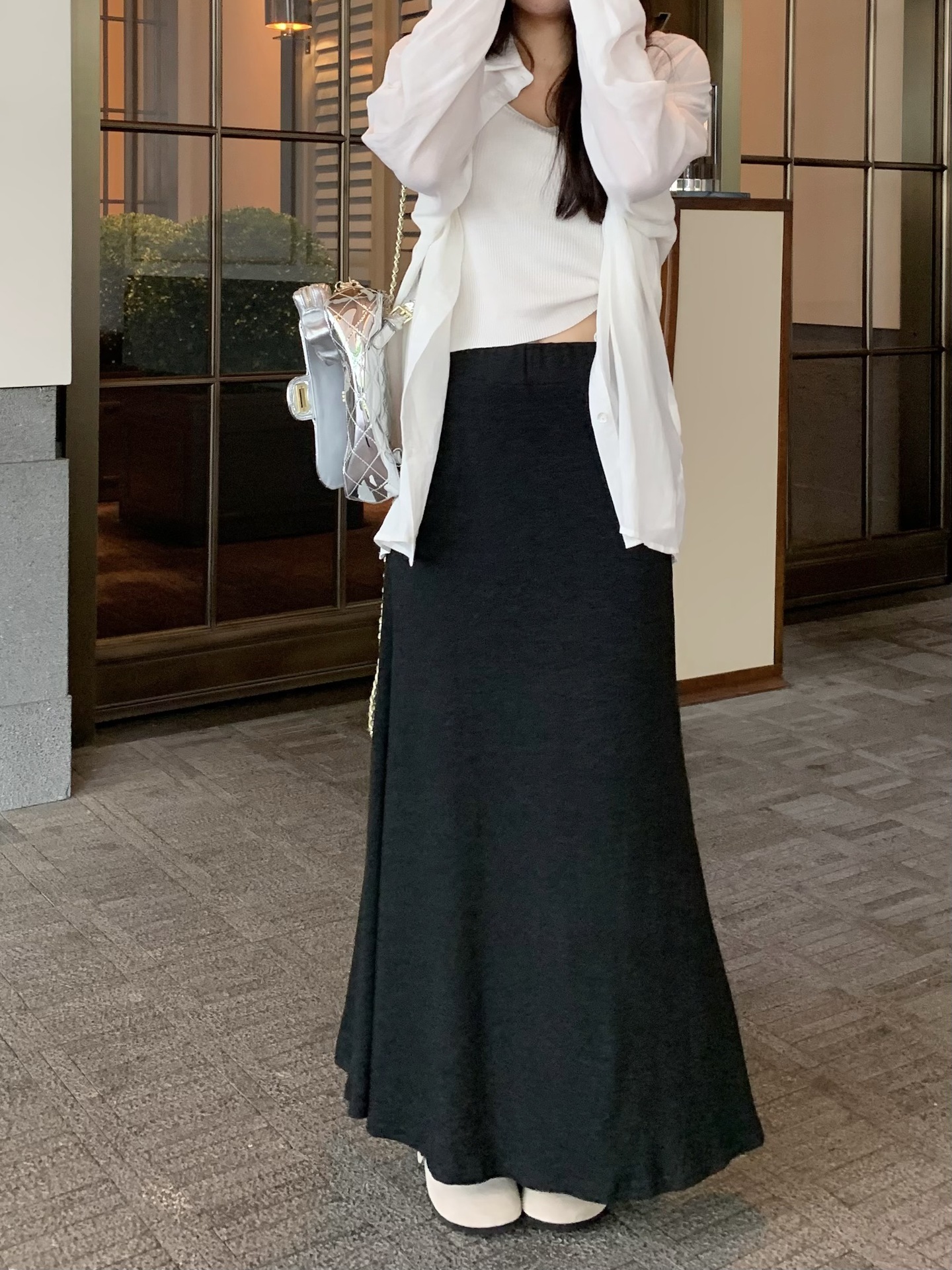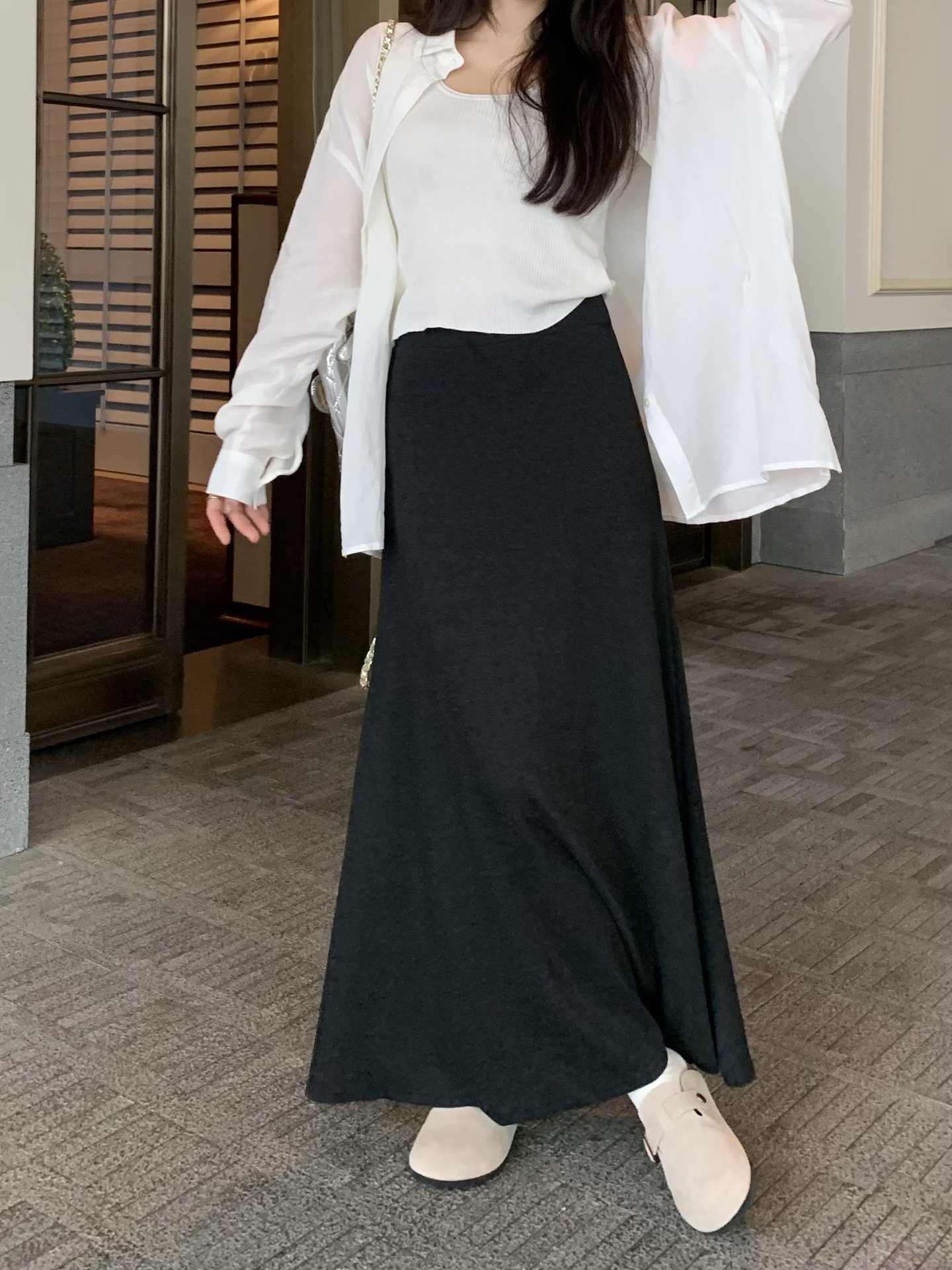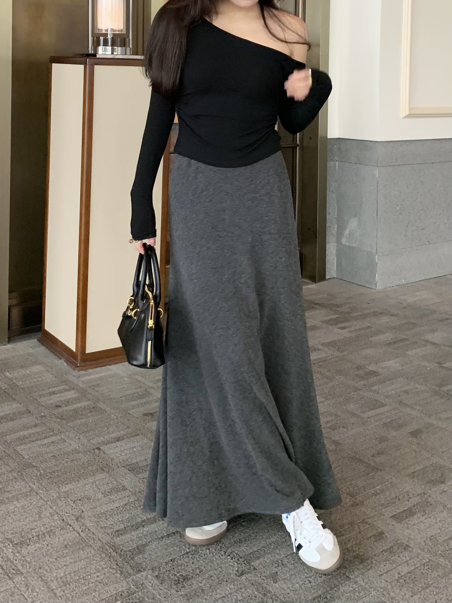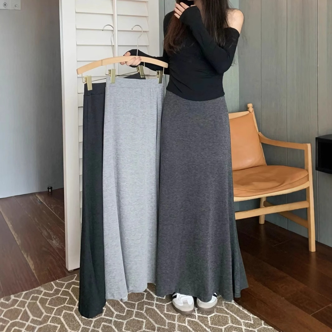 2025年秋新作 ゆったりプリーツAラインフィッシュテールハイウエストスカート レディース カジュアル 着痩せロングスカート 卸売