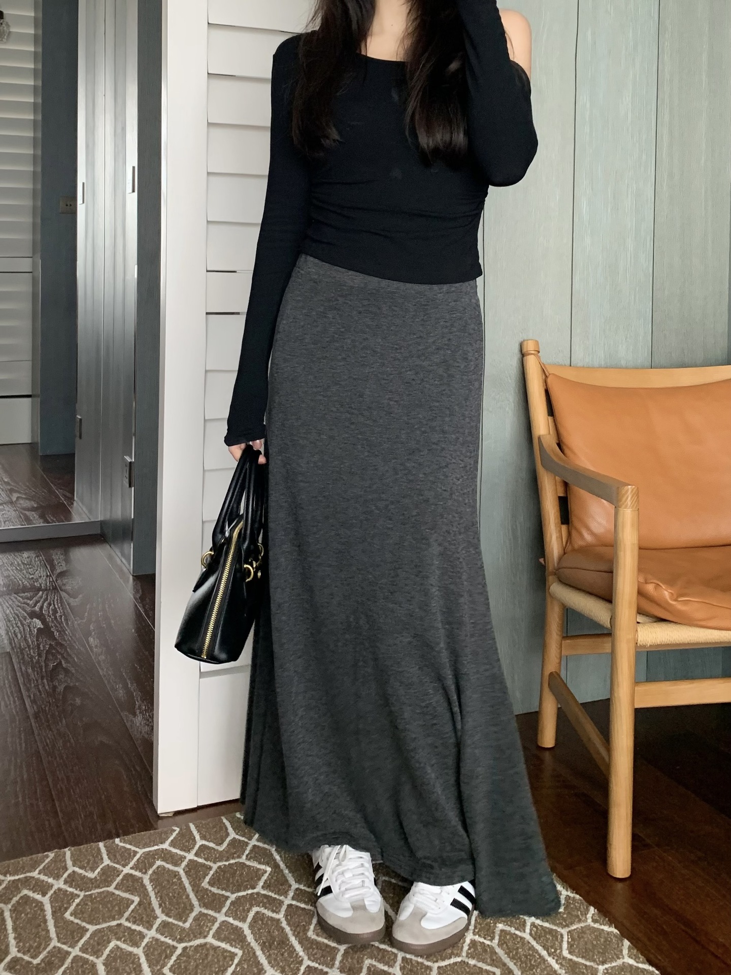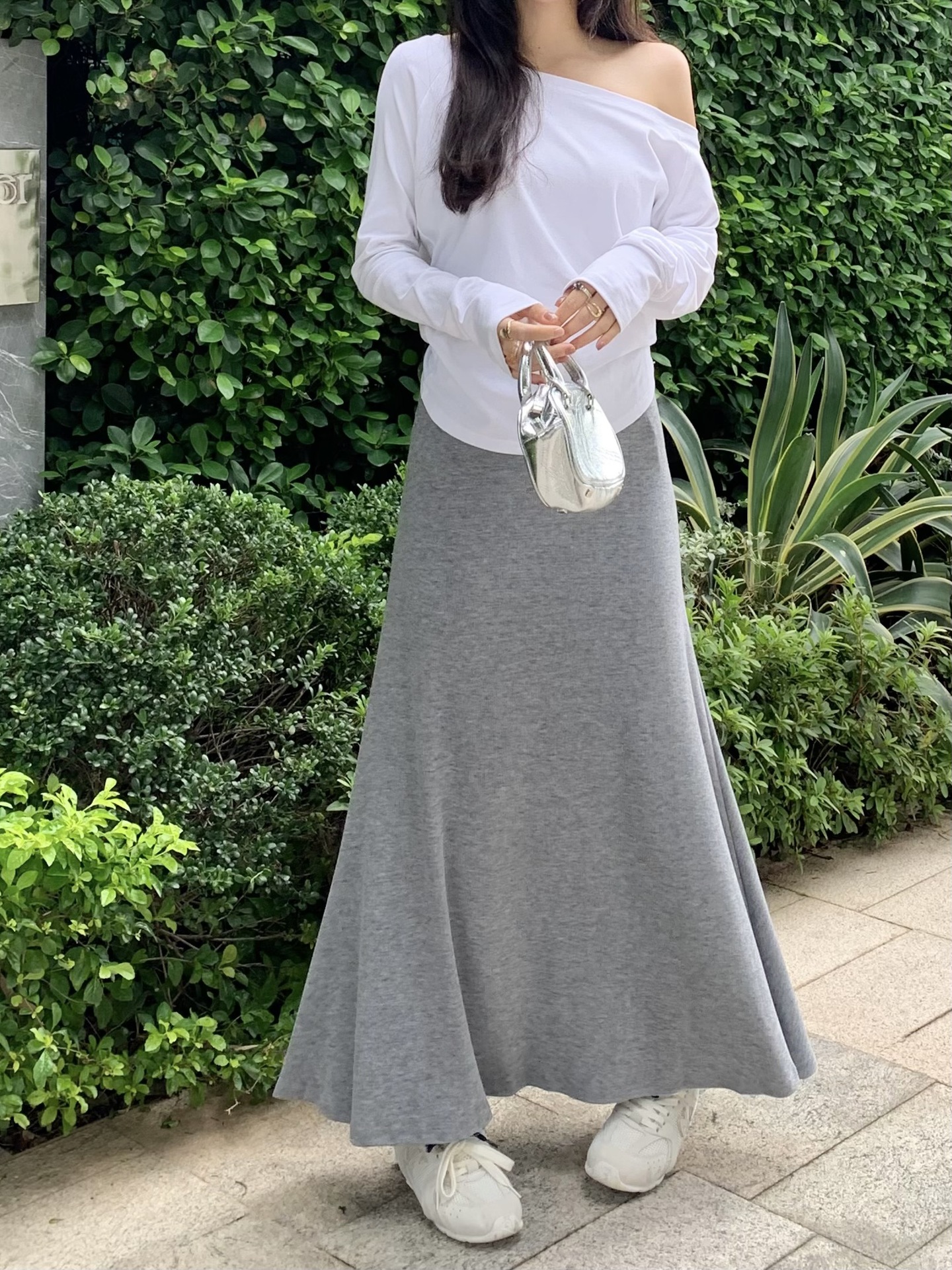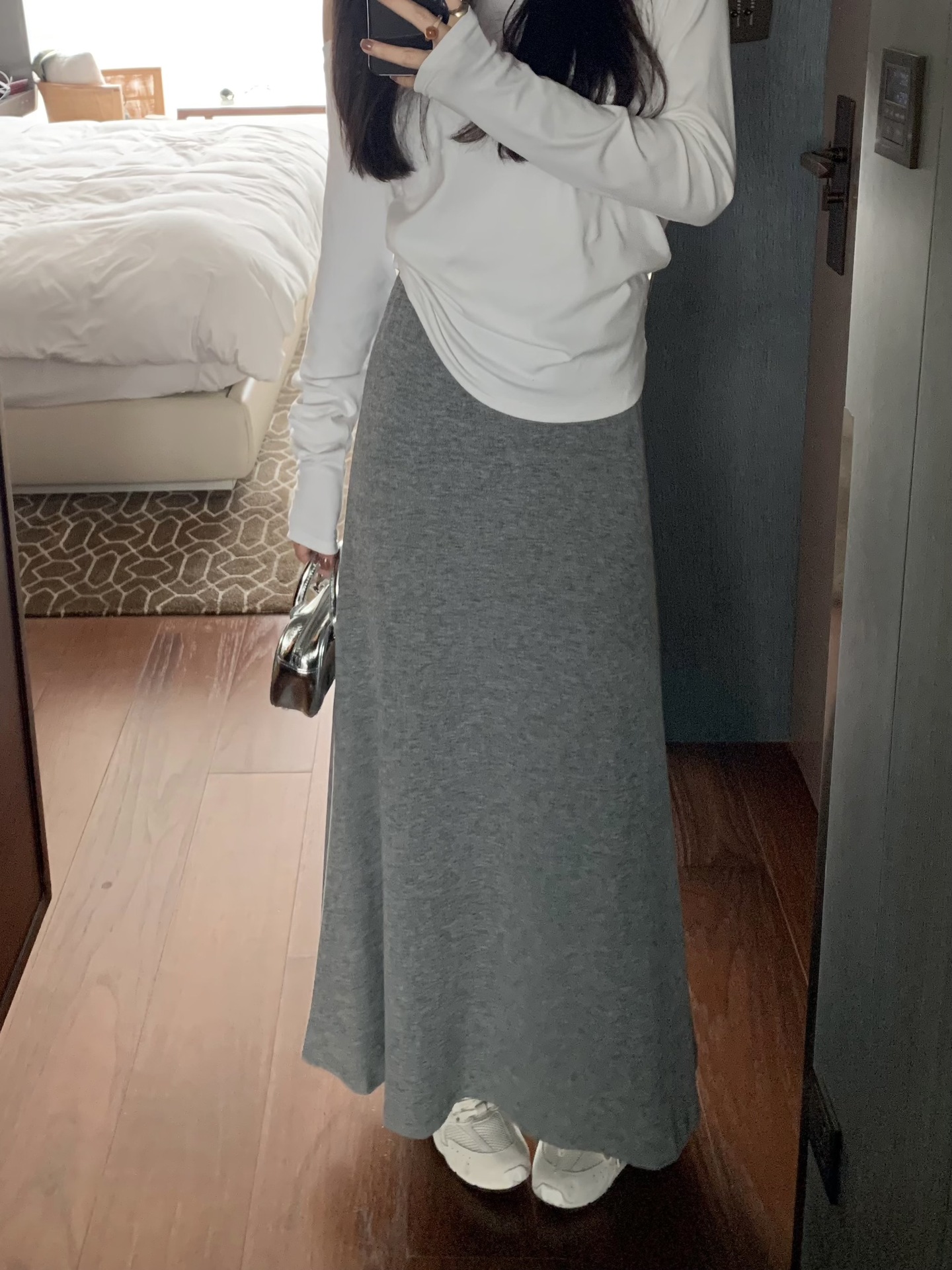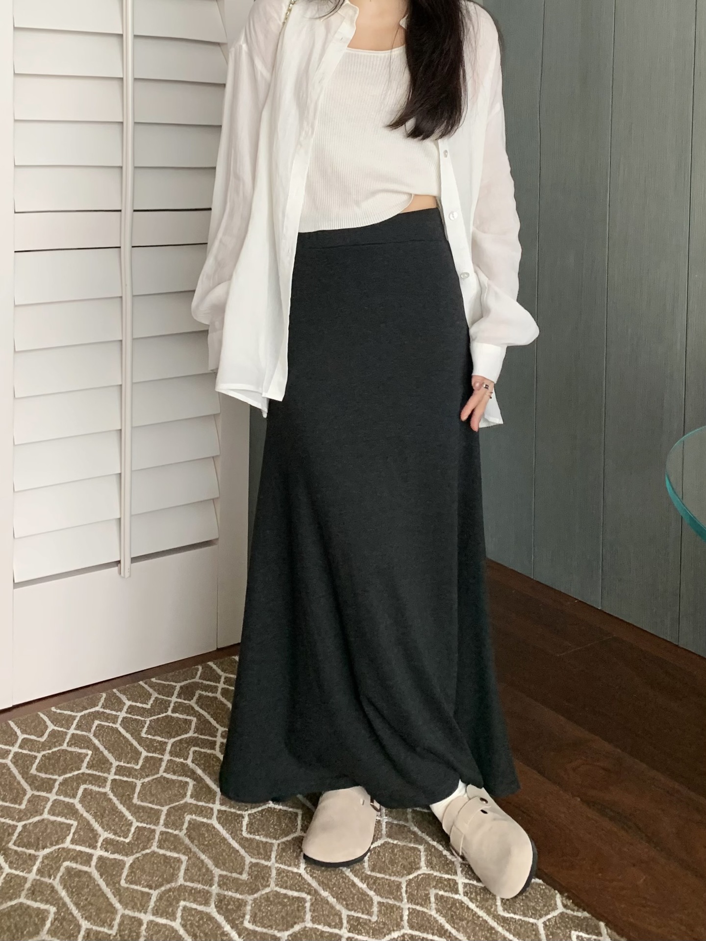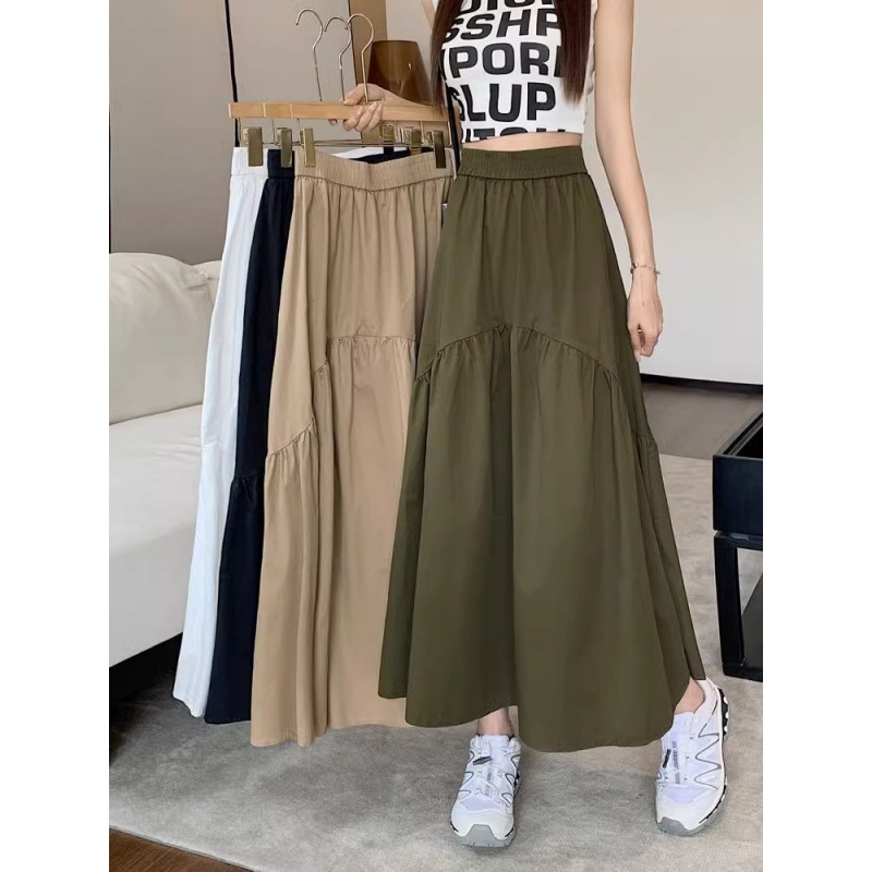 2025年秋新作 ゆったりプリーツAラインフィッシュテールハイウエストスカート レディース カジュアル 着痩せロングスカート 卸売