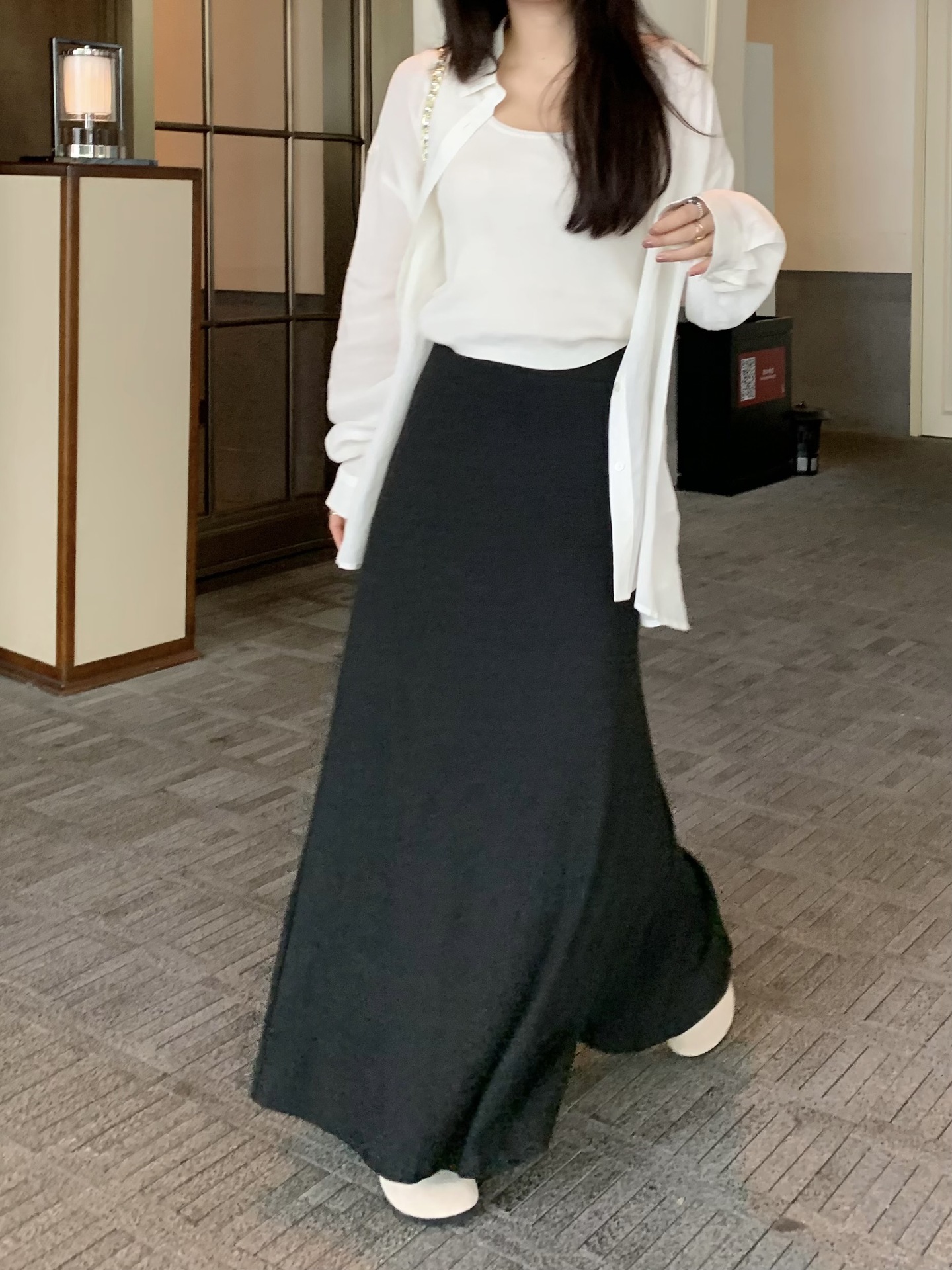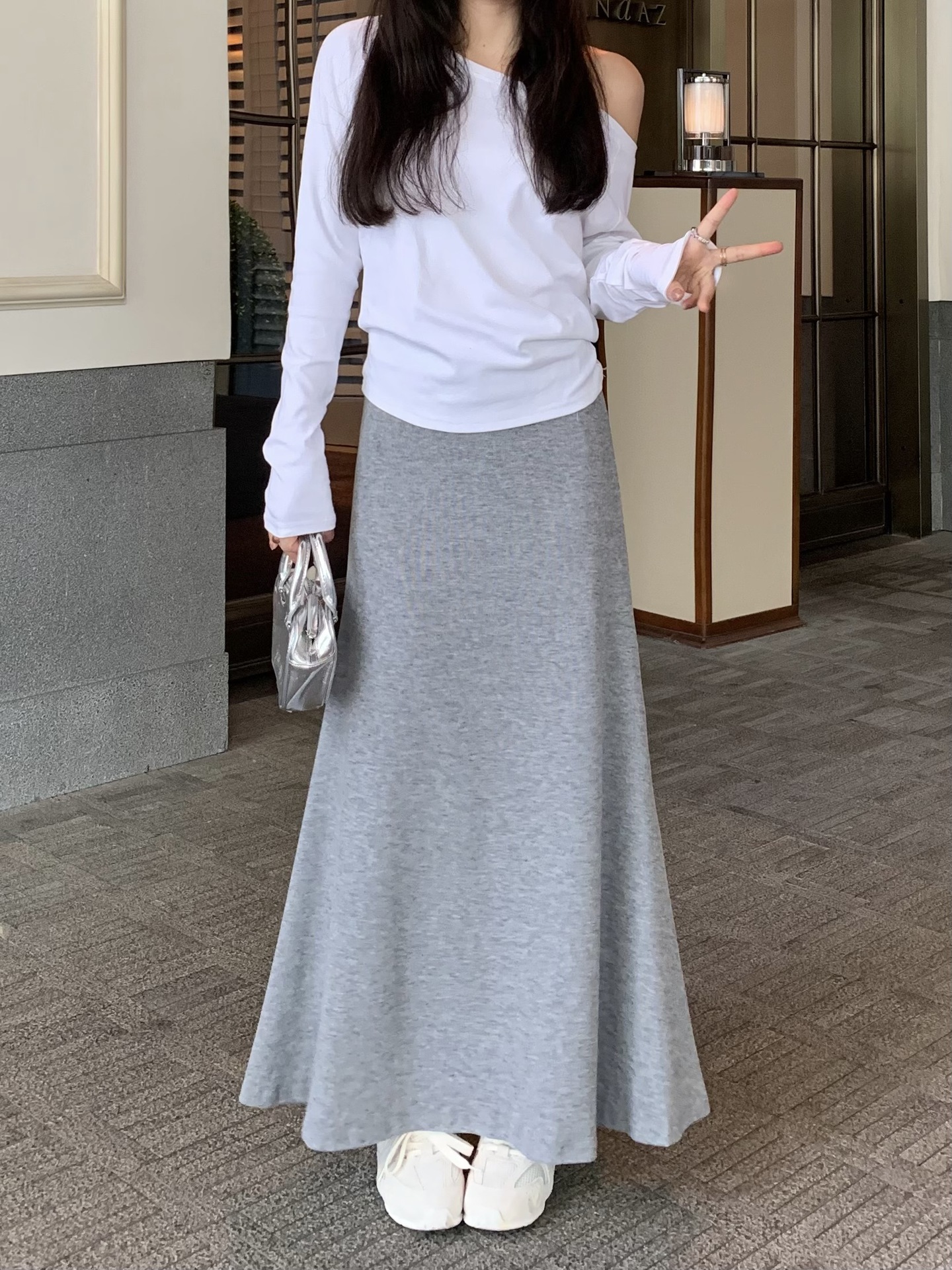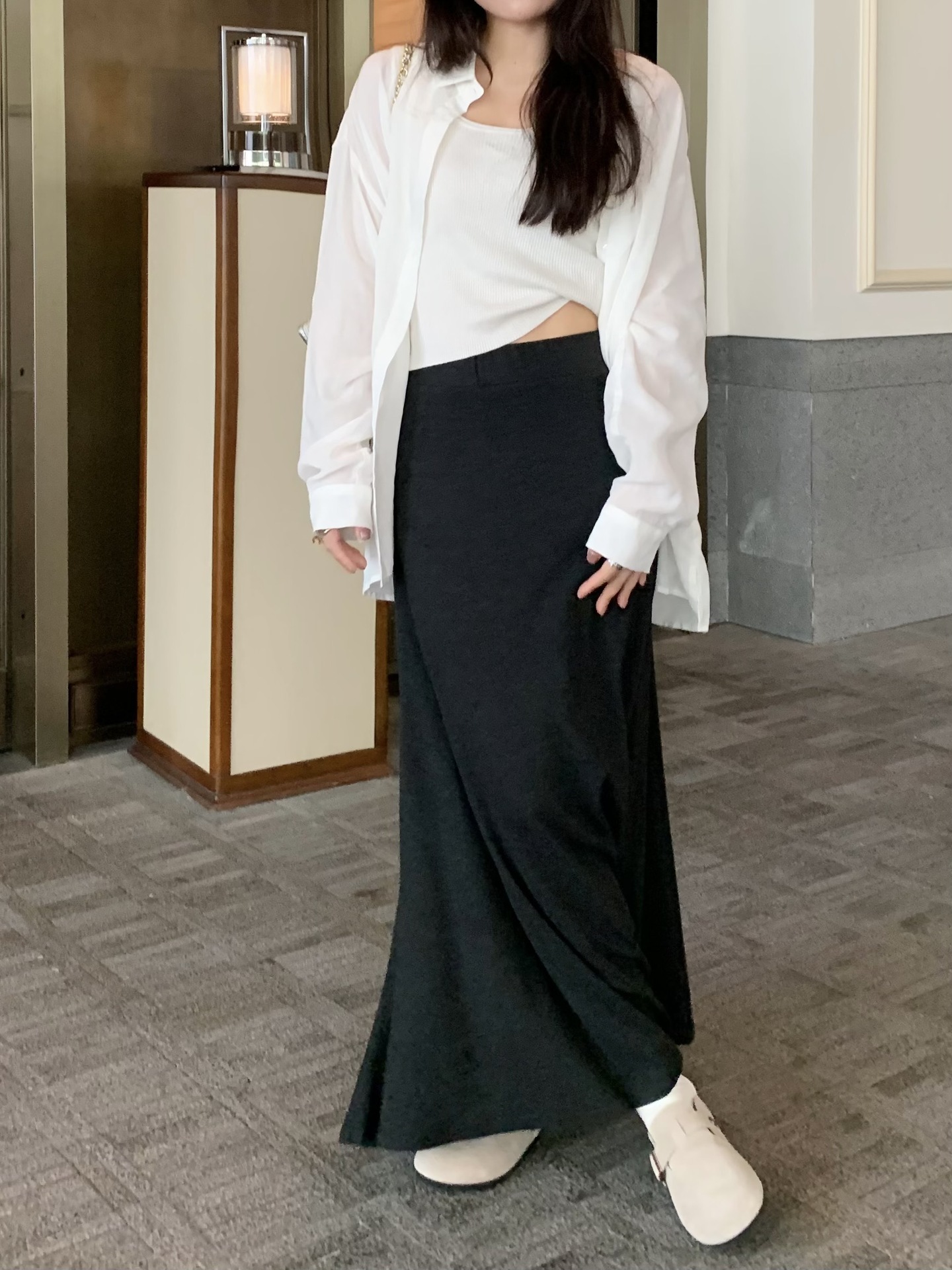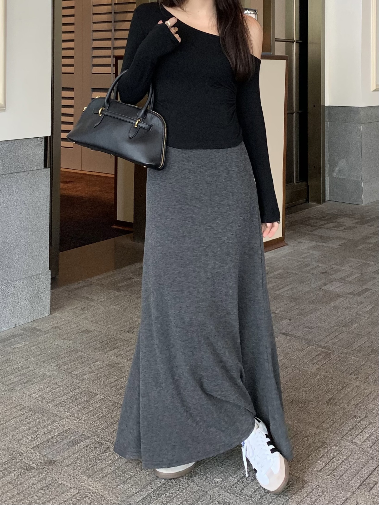 2025年秋新作 ゆったりプリーツAラインフィッシュテールハイウエストスカート レディース カジュアル 着痩せロングスカート 卸売