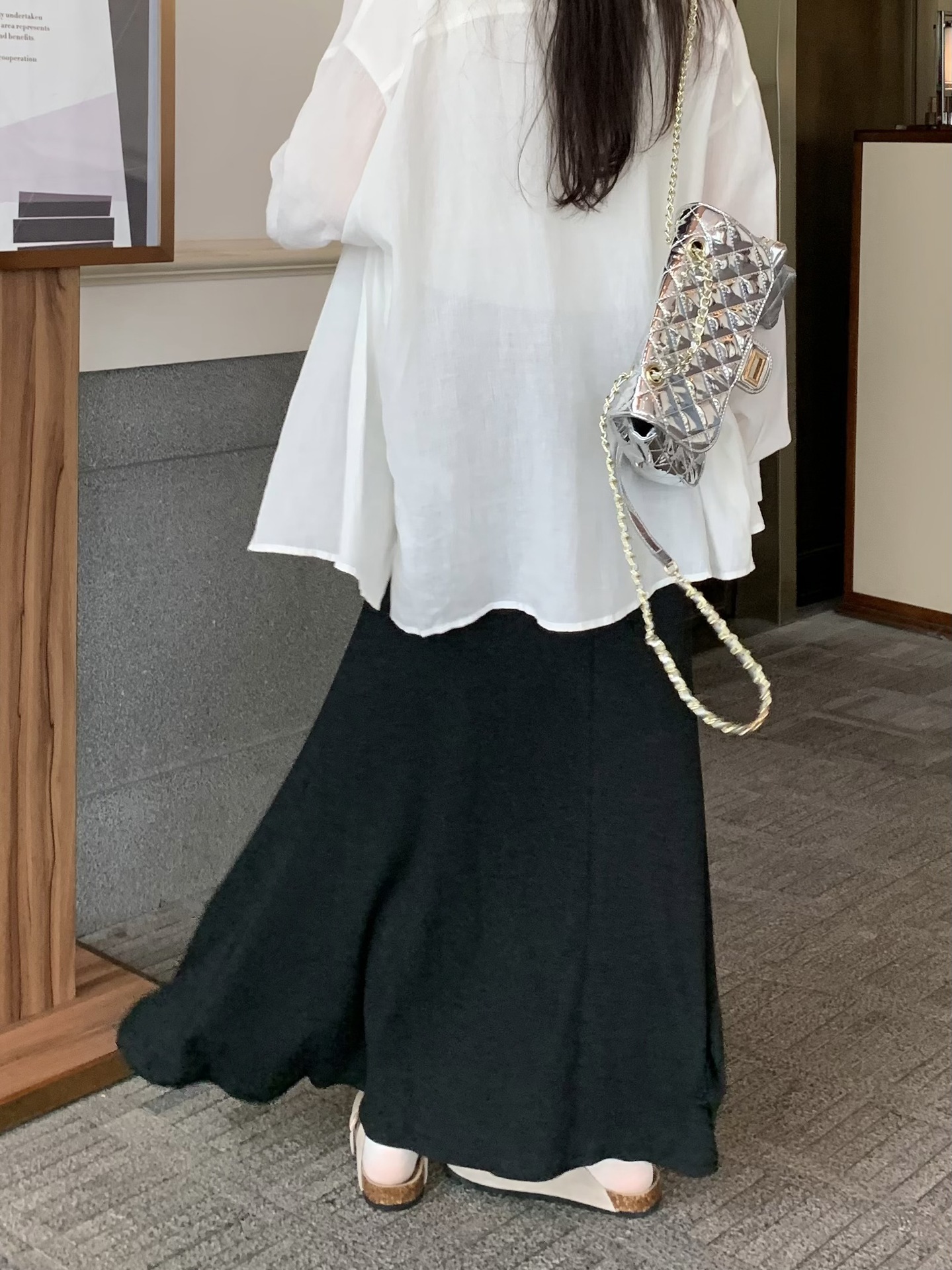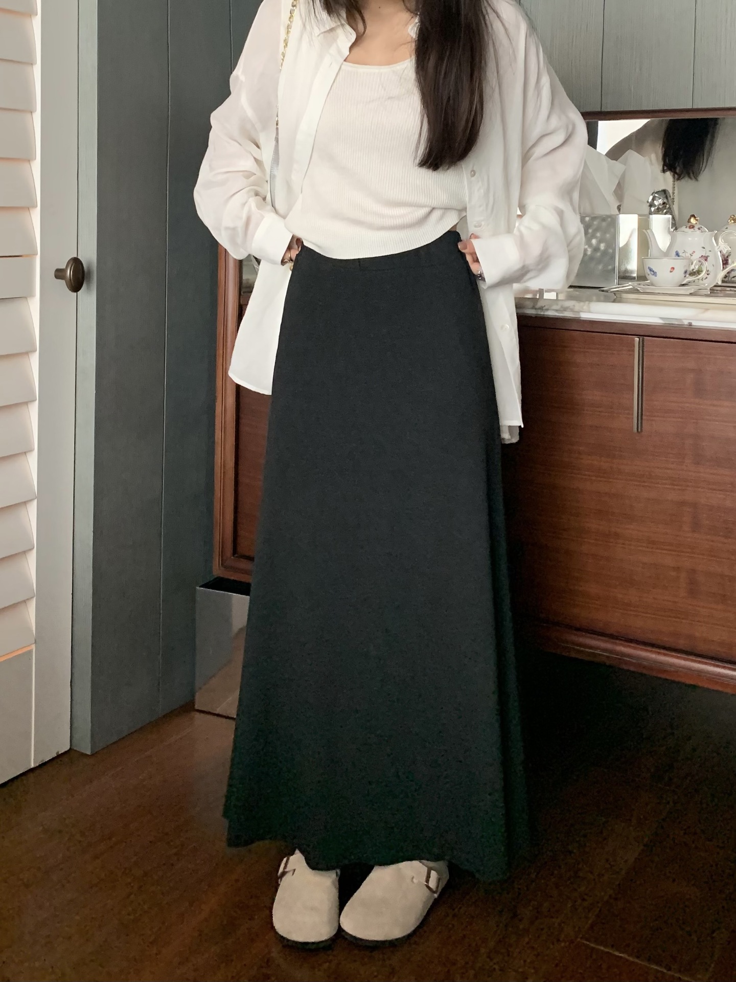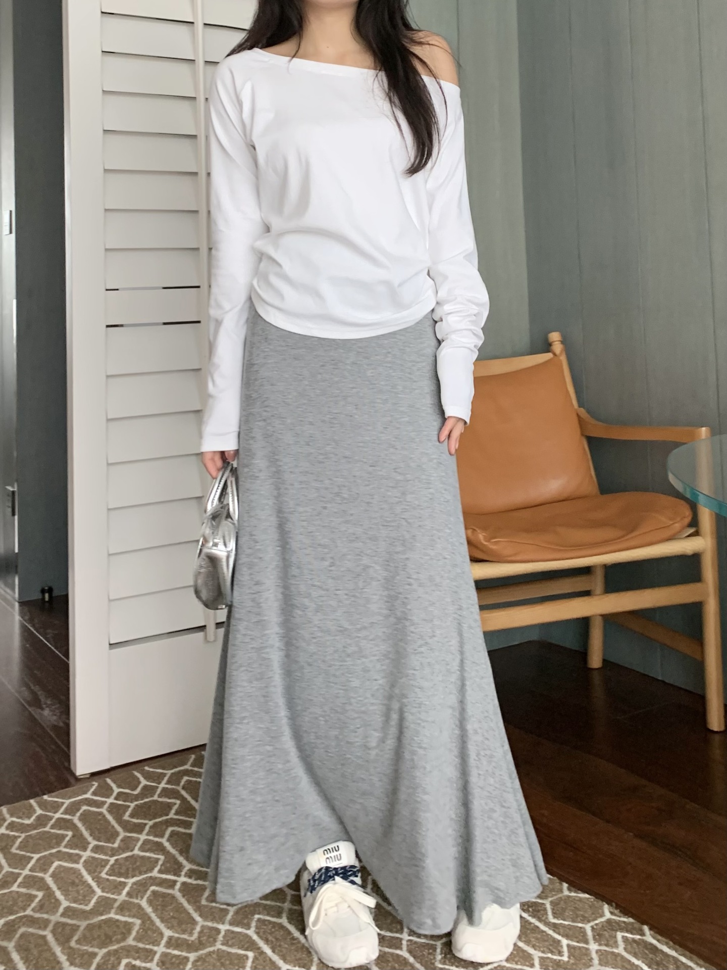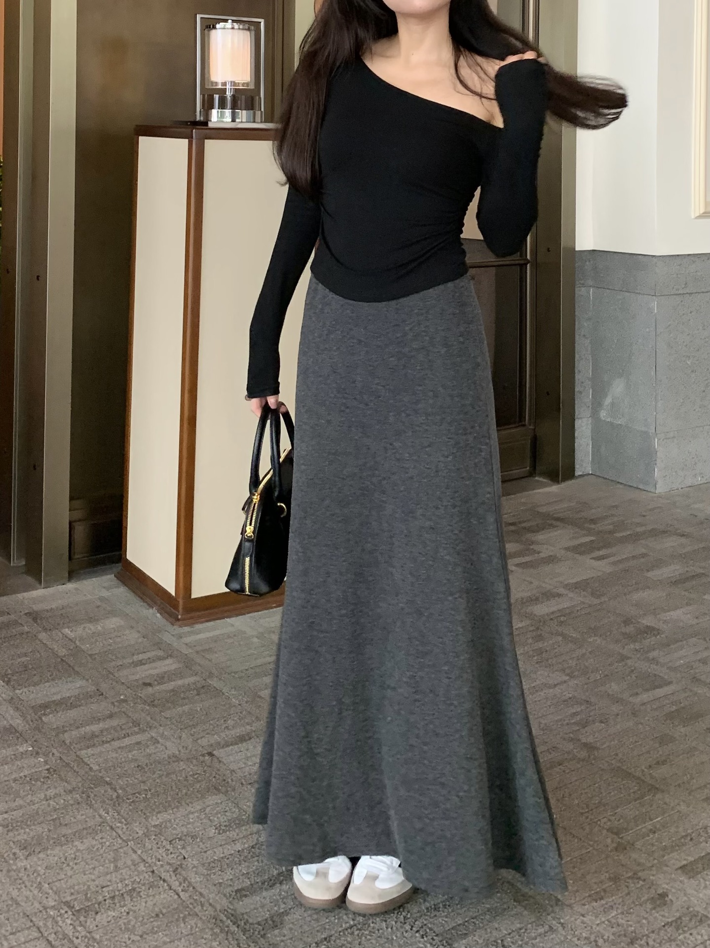 2025年秋新作 ゆったりプリーツAラインフィッシュテールハイウエストスカート レディース カジュアル 着痩せロングスカート 卸売