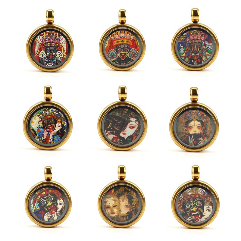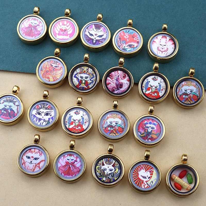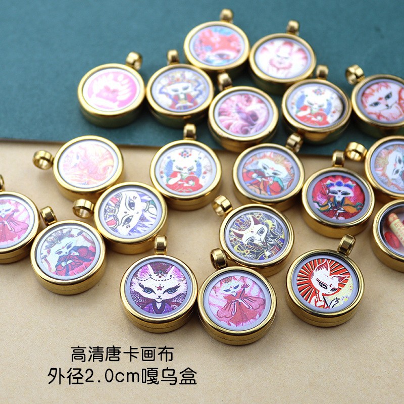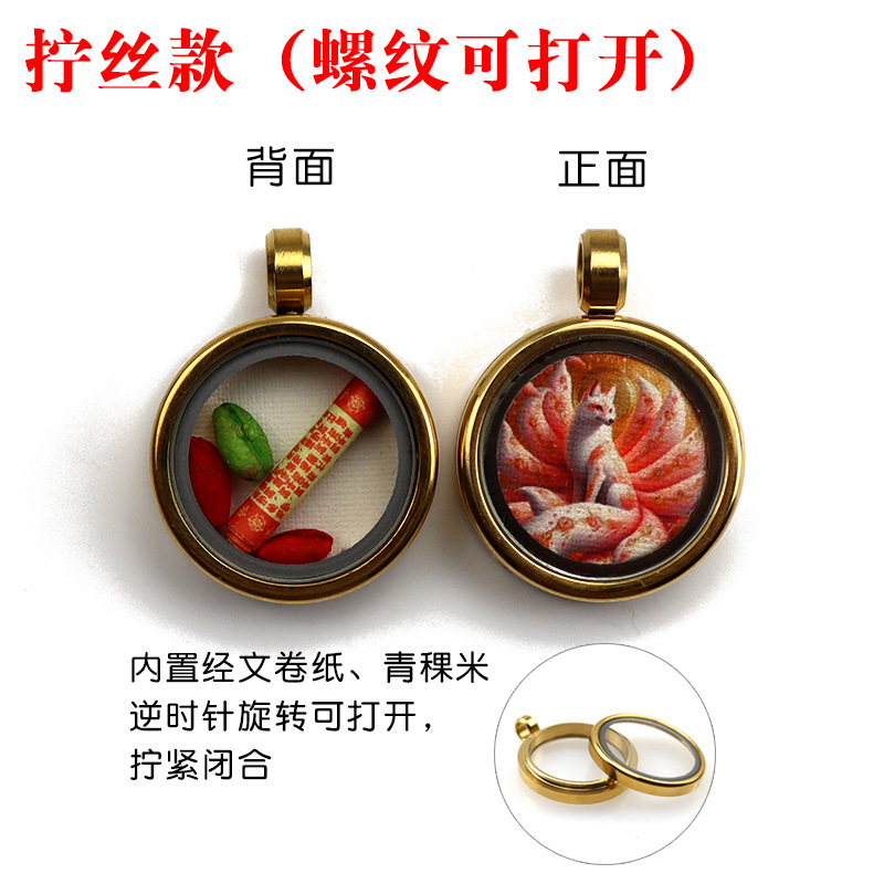 チベット 1.5 センチメートルチタン鋼リトルタンカペンダント九尾キツネキツネ妖精ザキラムゴールデンラウンドタンカガウボックス