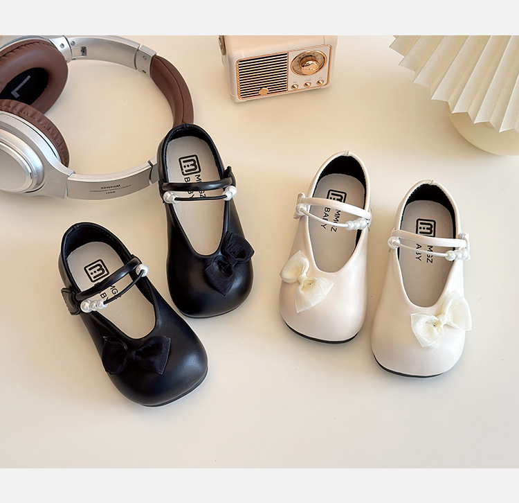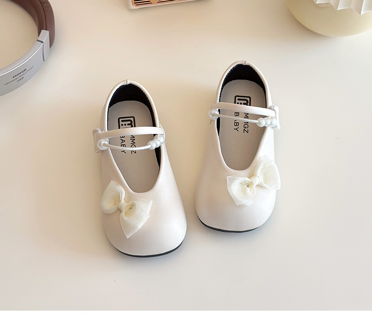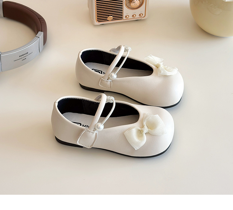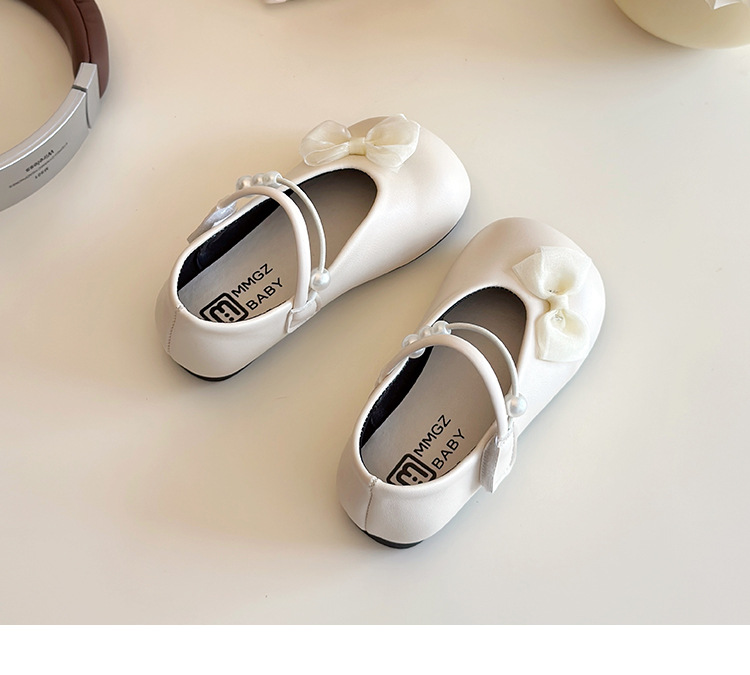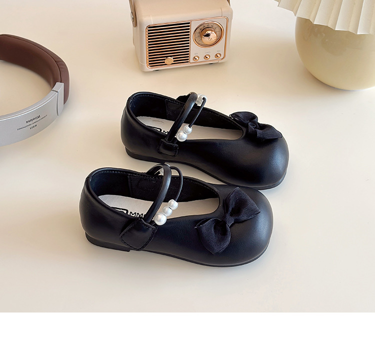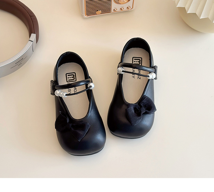 女の子の靴2025早春の新しい真珠の蝶結びの子供の靴の快適な王女の靴の女の子の柔らかい底の靴の潮