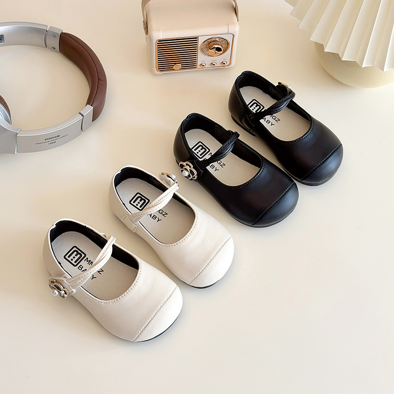女の子用革靴 2025年春秋新作 子供用ソフトソールプリンセスシューズ 女の子用おしゃれパールシューズ