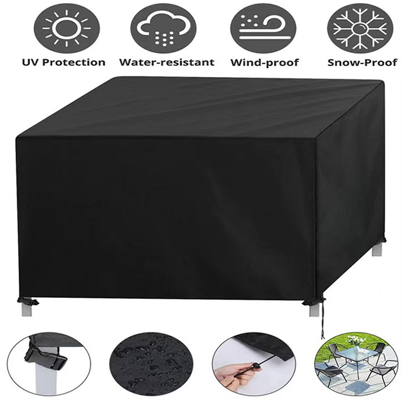 黒いオックスフォード布420d四角付きバックル屋外ガーデンテーブル椅子レインカバー屋外家具防水ダストカバー