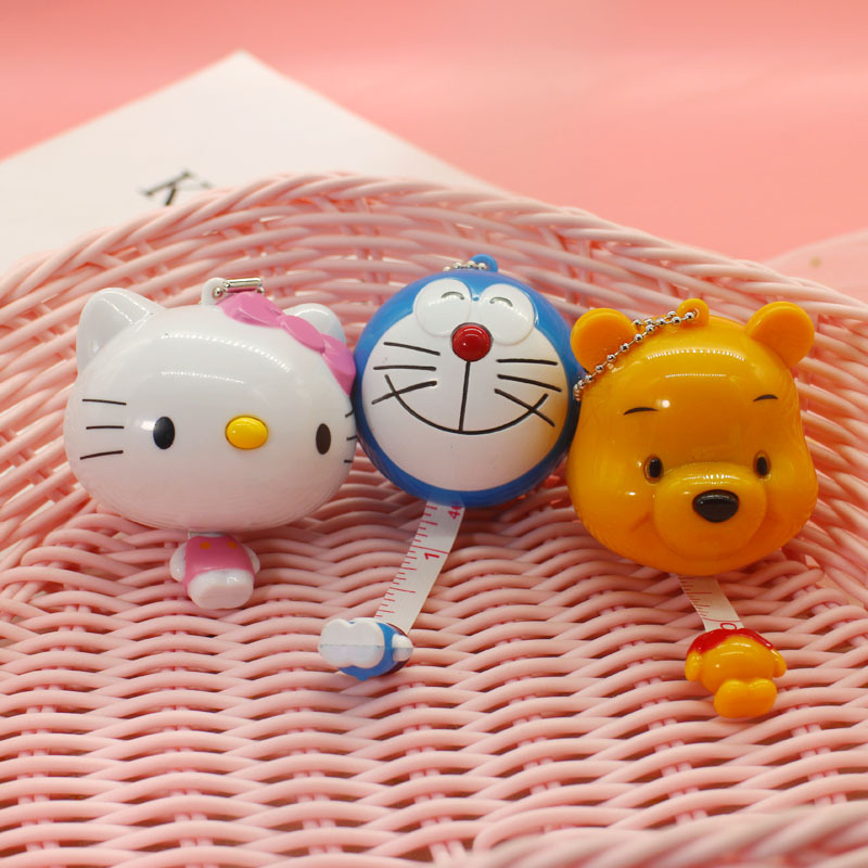 露店夜市アニメ公仔ピンク猫青漫画猫自動伸縮巻尺バッグ掛けソフト定規キーホルダー