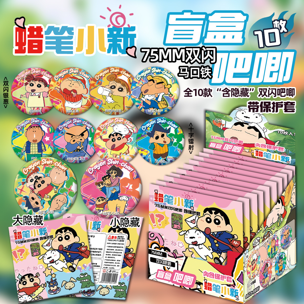 クレヨンしんちゃん ブラインドボックス 新アニメ周辺機器 野原しんのすけ ダブルフラッシュレーザーバッジ グミ 75MM
