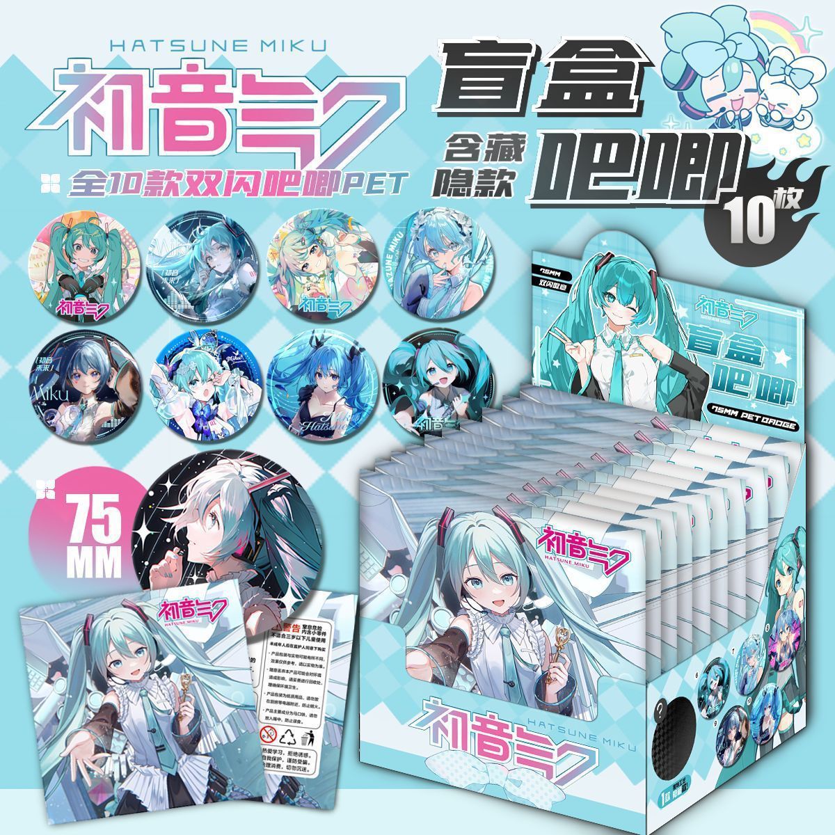 ブラインドケース75MMダブルフラッシュバッジ初音ミク恋とディープライン子犬アニメ周辺胸章谷子