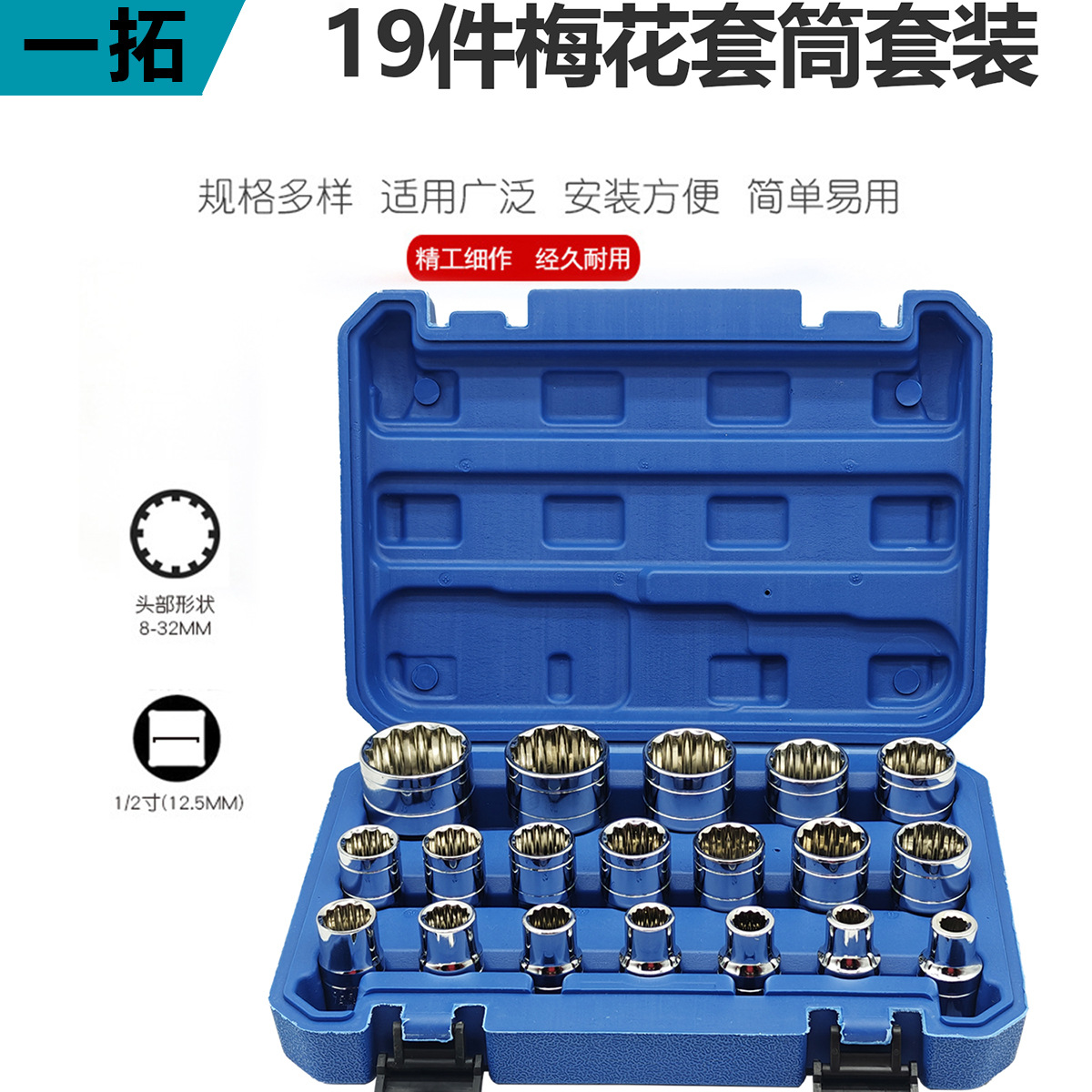 19件套12角梅花齿形套筒头电动棘轮扳手工具1/2寸大飞8-32mm 汽修