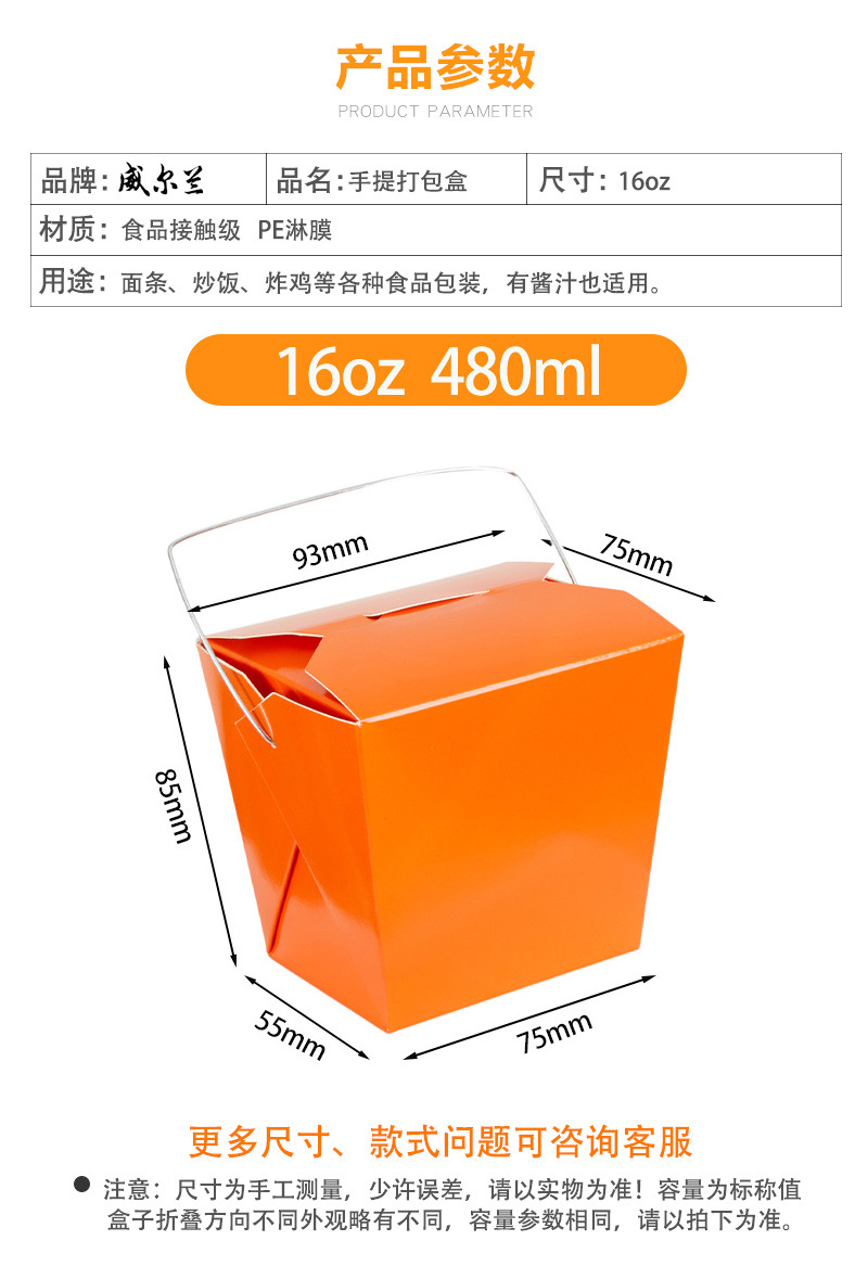 上質な手提げ梱包箱フライドチキンパスタ弁当箱チャーハン出前寿司サラダファストフード赤中国風スポット