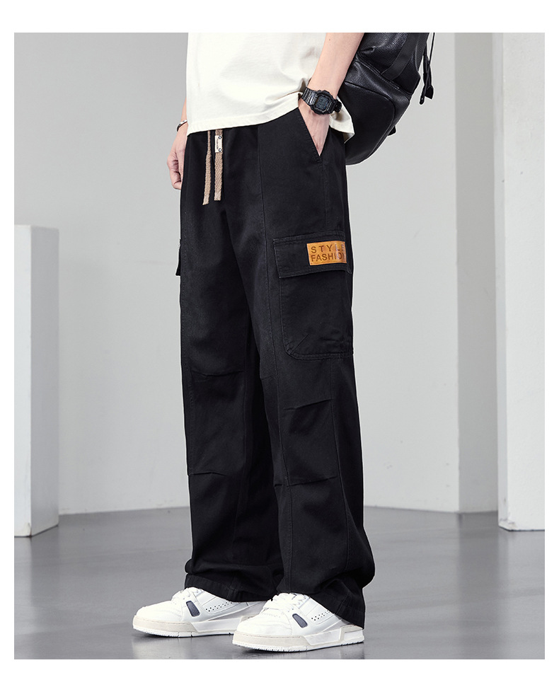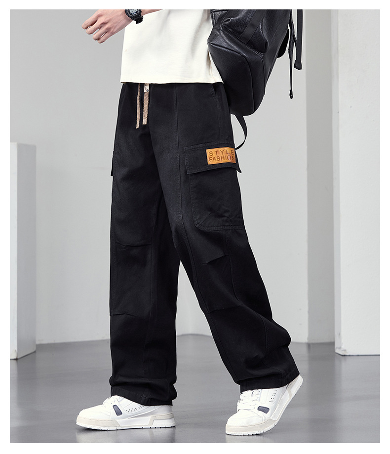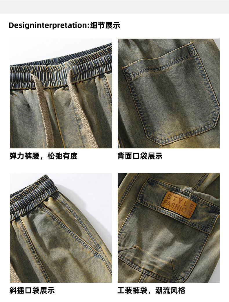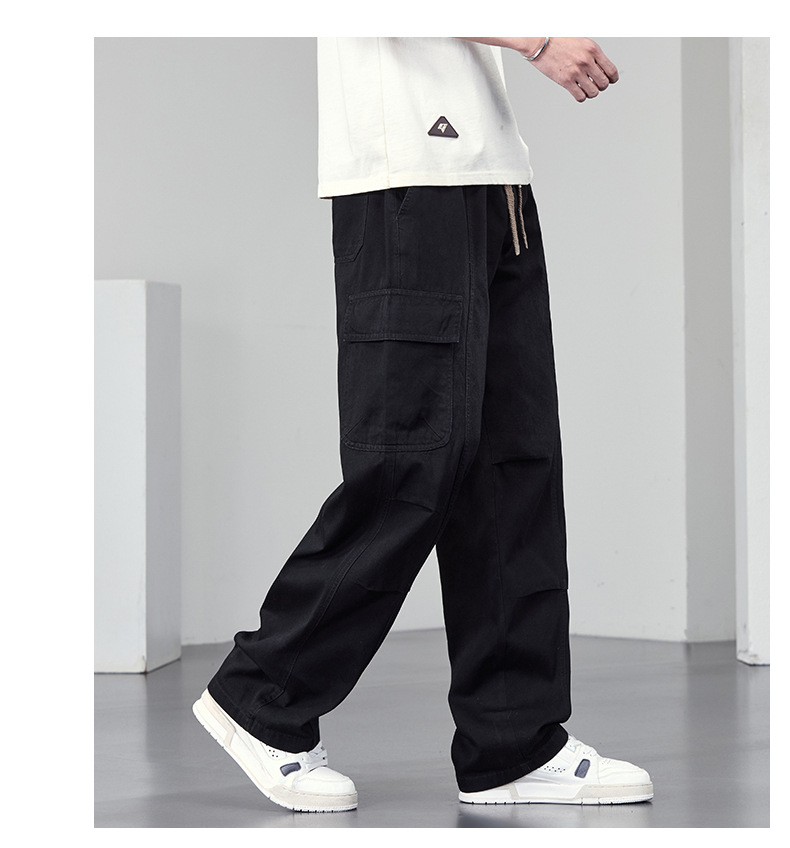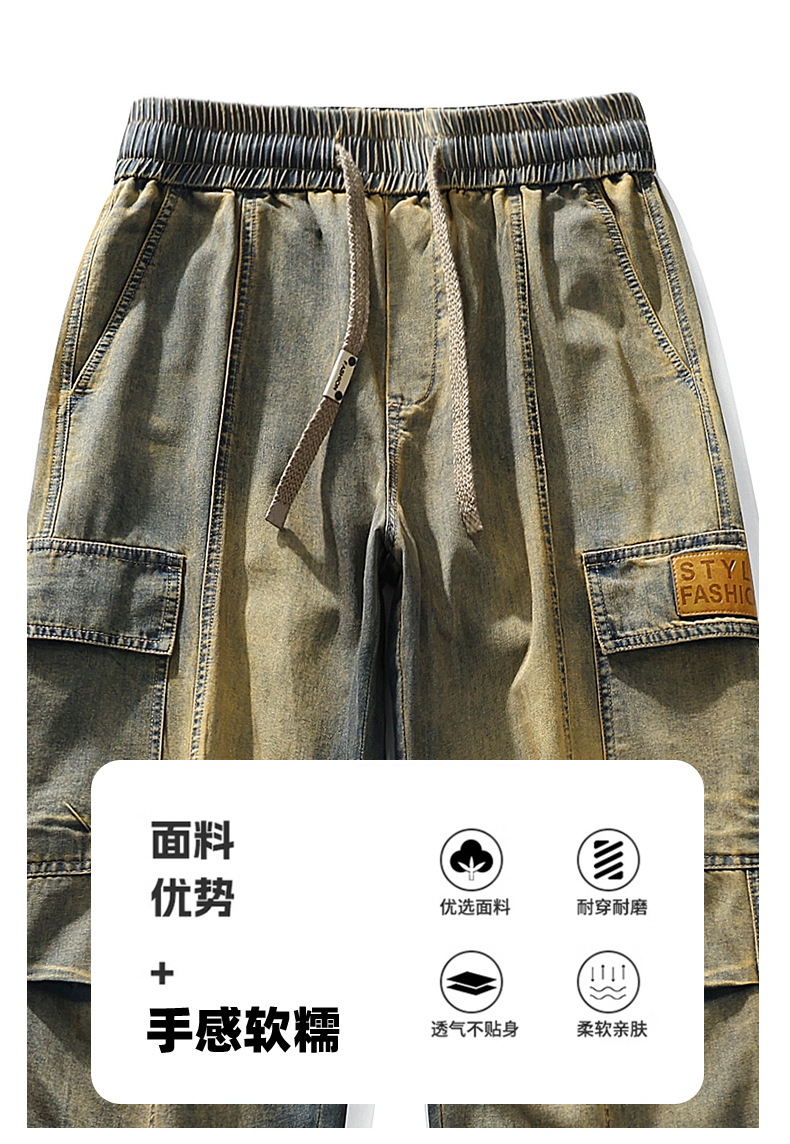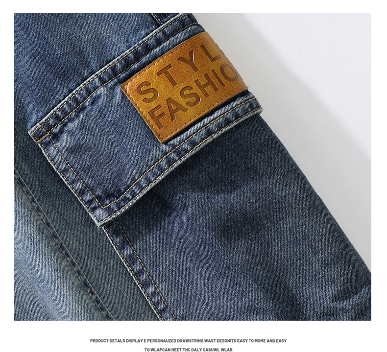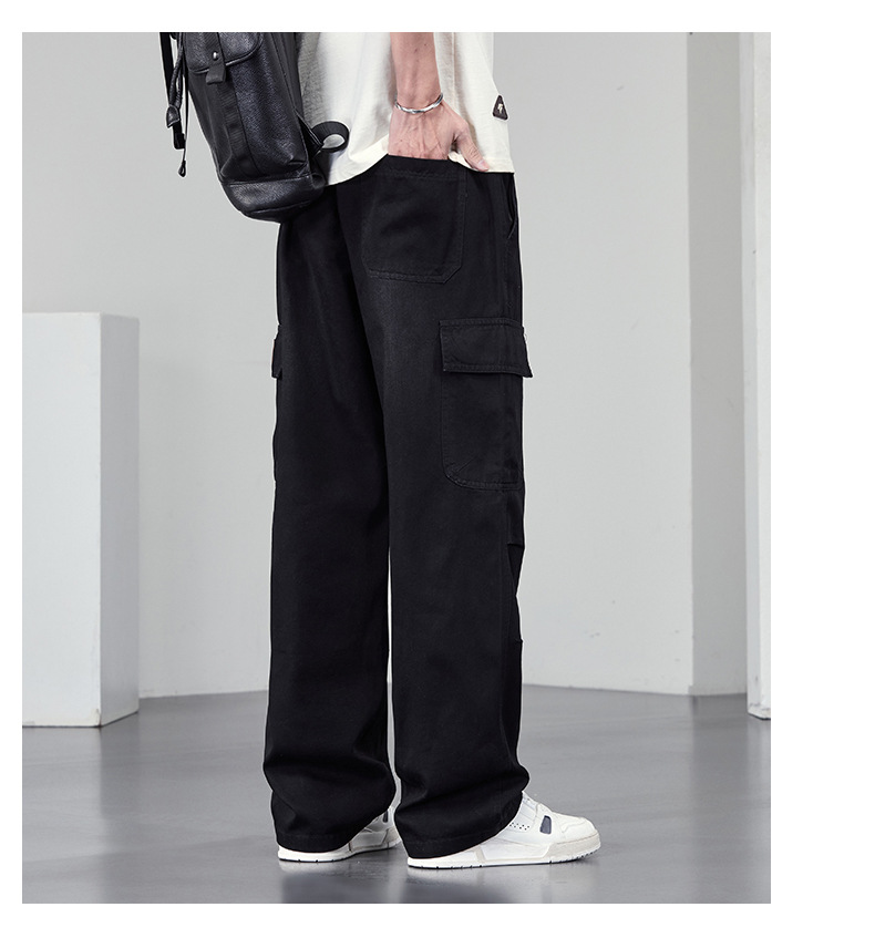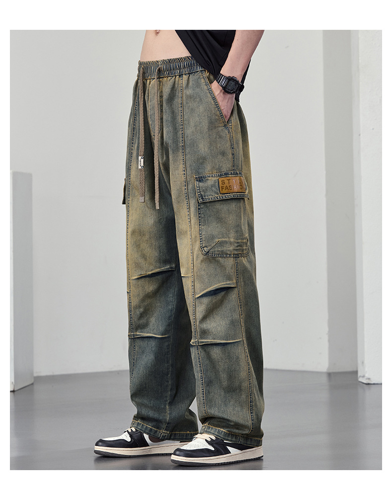 秋の工装ジーンズ男性ゆるいファッションブランド日系多ポケット直筒長ズボン復古大サイズズボン九分潮