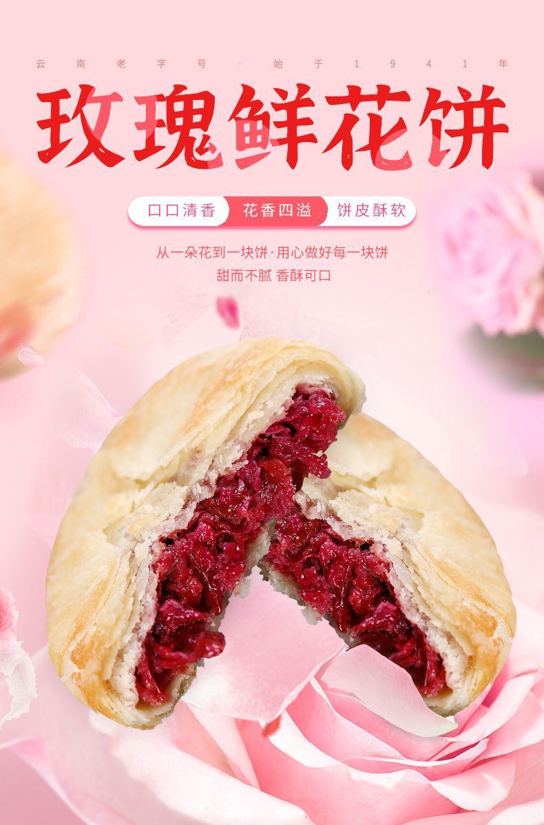 玫瑰鲜花饼云南特产正宗玫瑰饼传统糕点零食休闲食品早餐中秋批发