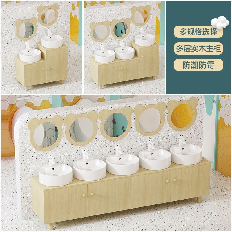 66幼稚園児童実木浴室キャビネットセットアニメ陶磁器洗面器高低子供カラー洗面台
