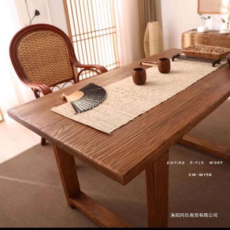 オールドニレ大型ボードテーブル一体型丸太B&B商業ホテルテーブルダイニングテーブルオール無垢材長方形中国長テーブル