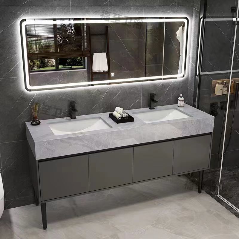 99クリーム風浴室キャビネットセットセラミック一体盆シンプルスマート浴室トイレ洗面台洗面台浴室キャビネット