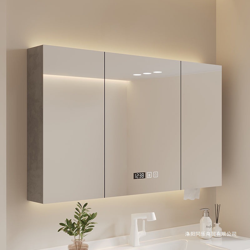 スマート単独鏡棚トイレ壁掛け式物置棚実木浴室ロッカー化粧鏡ランプ付き収納棚