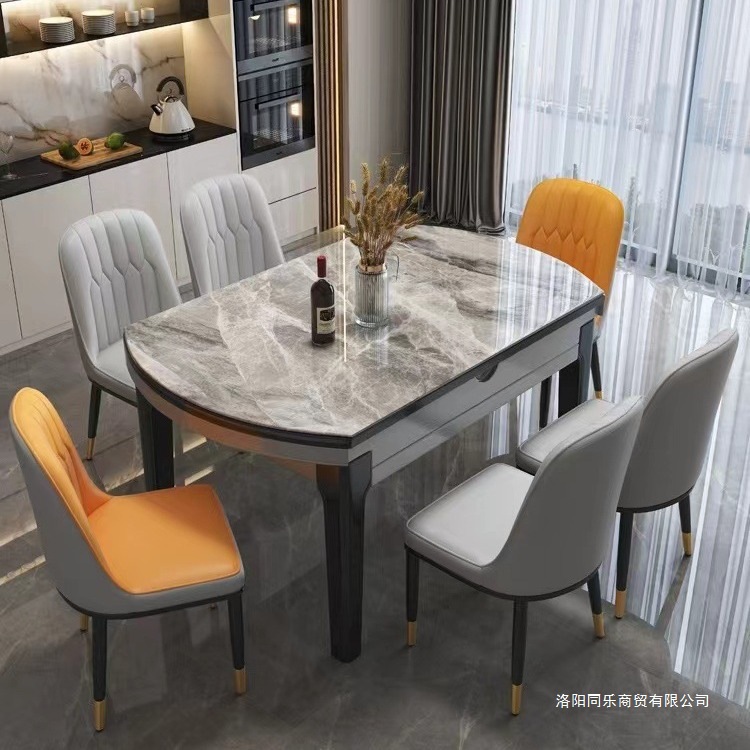 岩板食卓と椅子の組み合わせ家庭用食事現代シンプルで贅沢な折り畳み伸縮可変円卓小戸型食卓