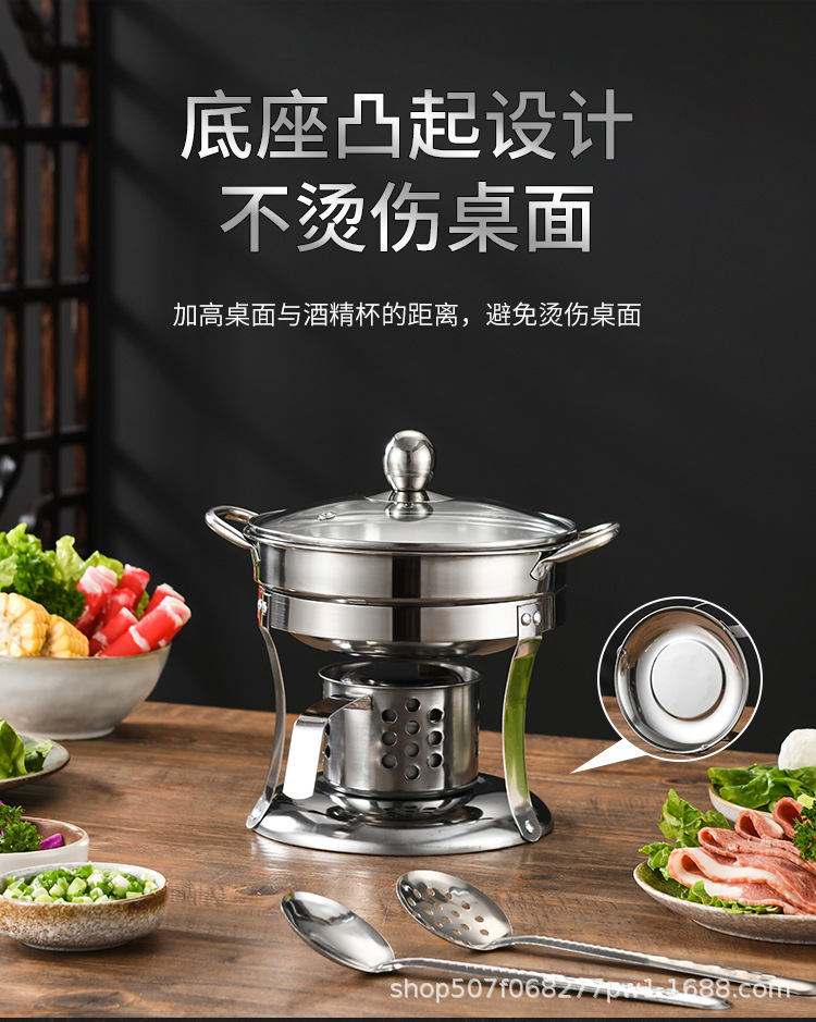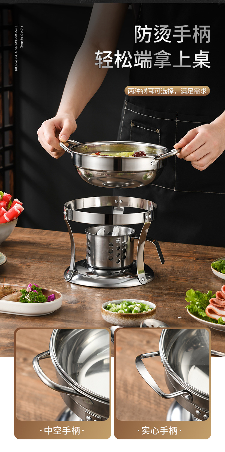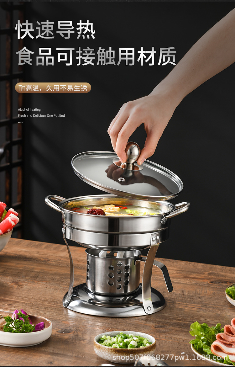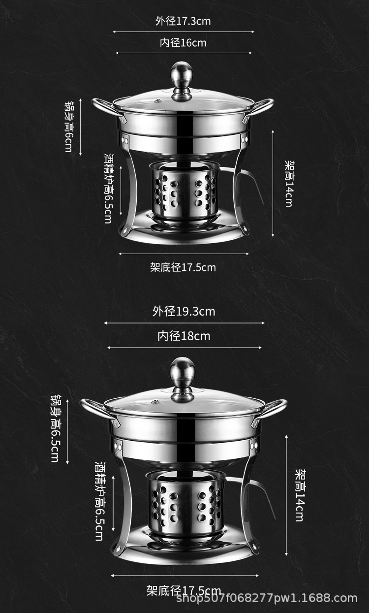 ステンレス鋼厚い液体固体アルコールストーブ小さな鍋家庭用スープ鍋学生寮鍋子屋外アルコール鍋
