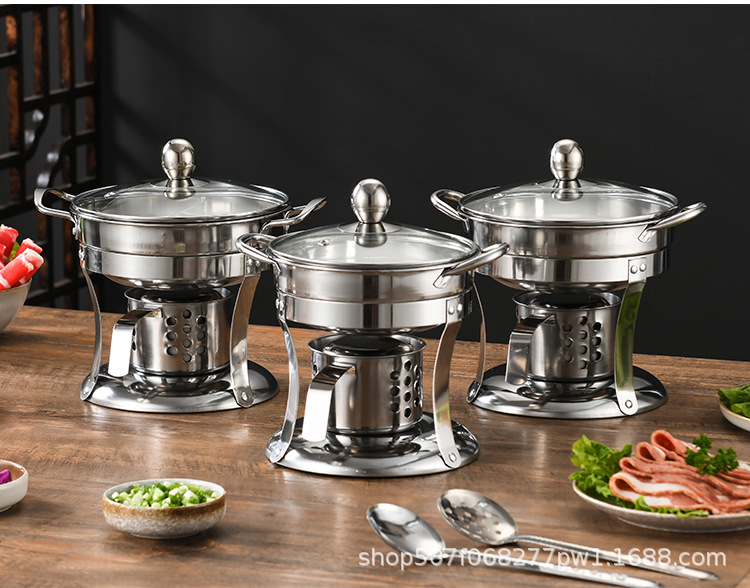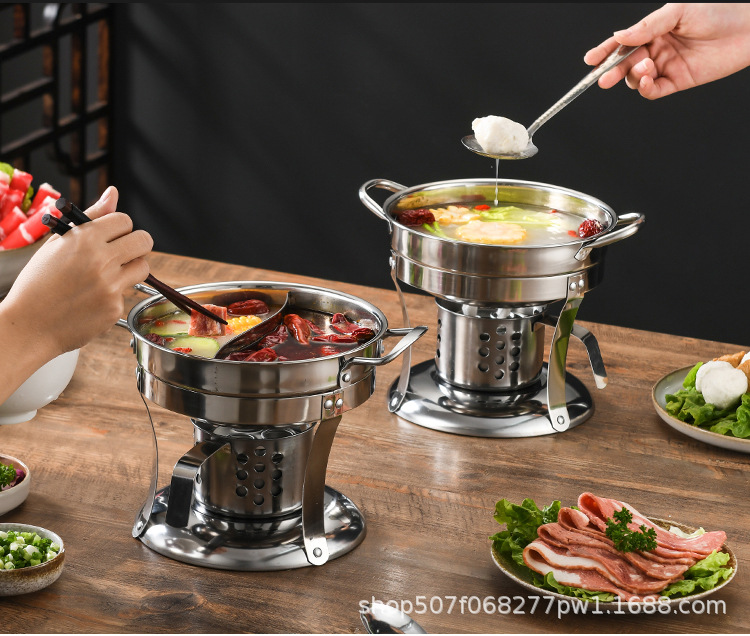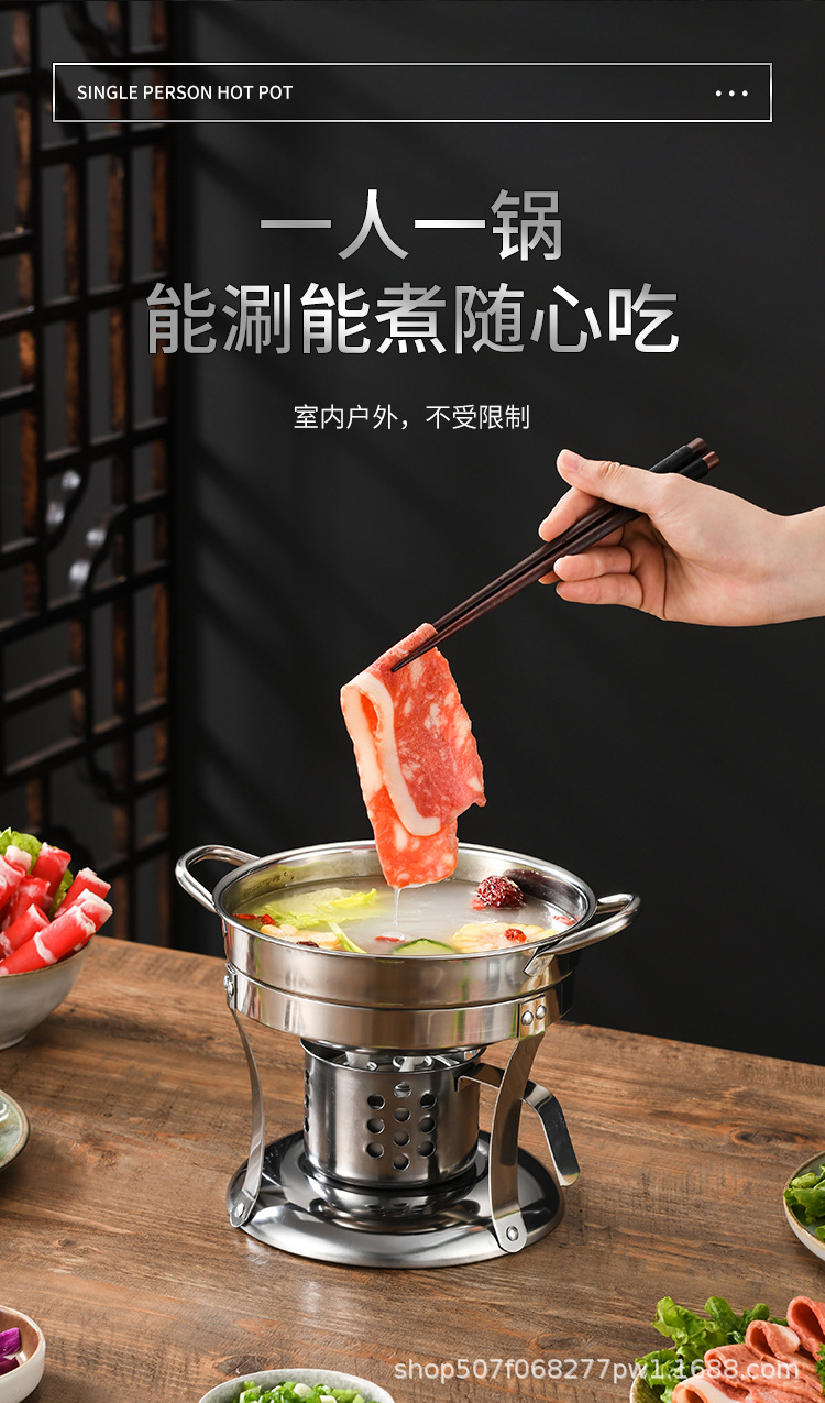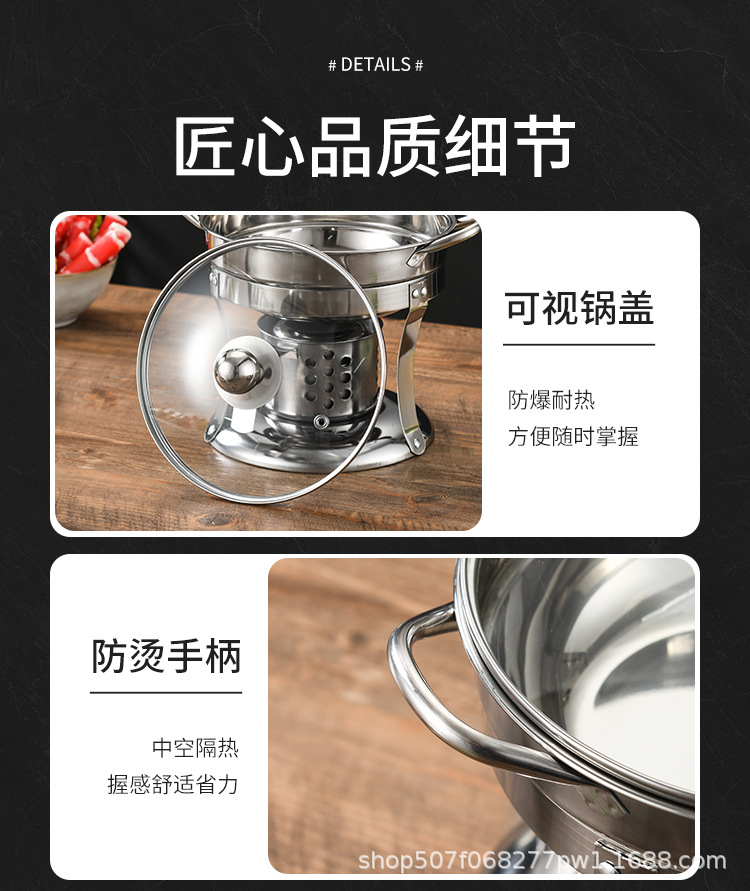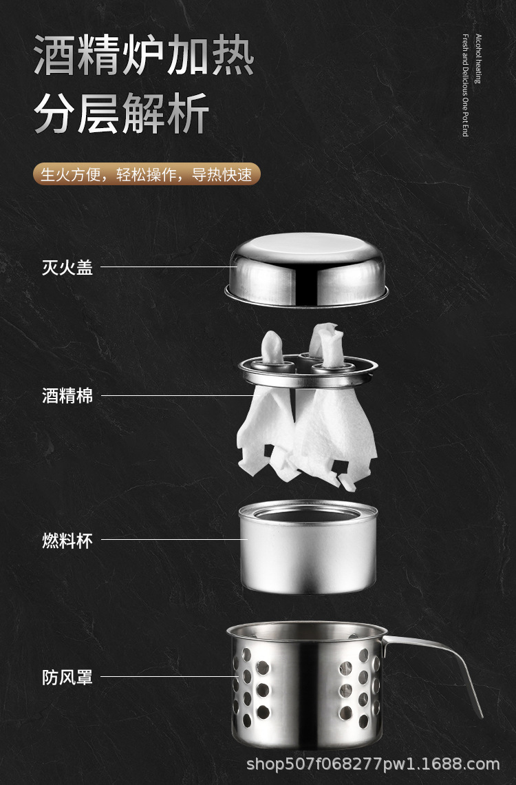 ステンレス鋼厚い液体固体アルコールストーブ小さな鍋家庭用スープ鍋学生寮鍋子屋外アルコール鍋