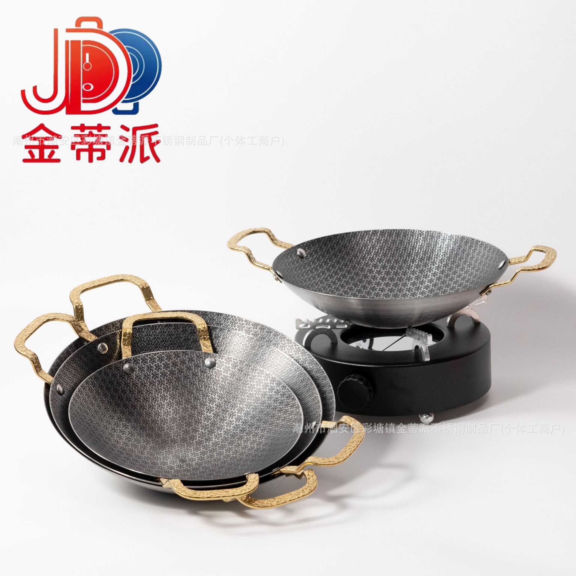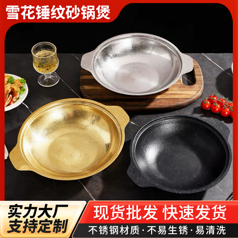 雪花锤纹煲仔锅不锈钢小火锅平底不粘锅无铆钉干锅仔商用牛蛙锅