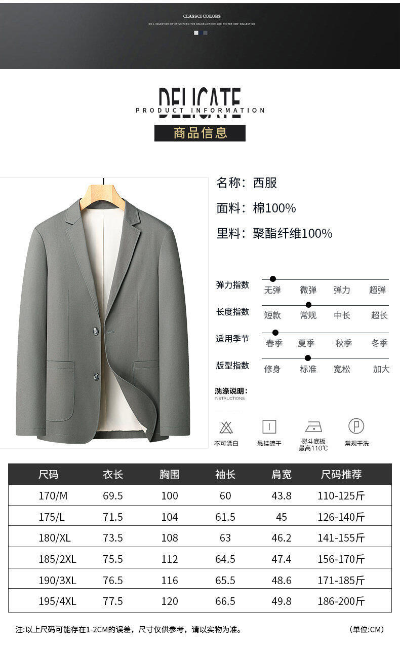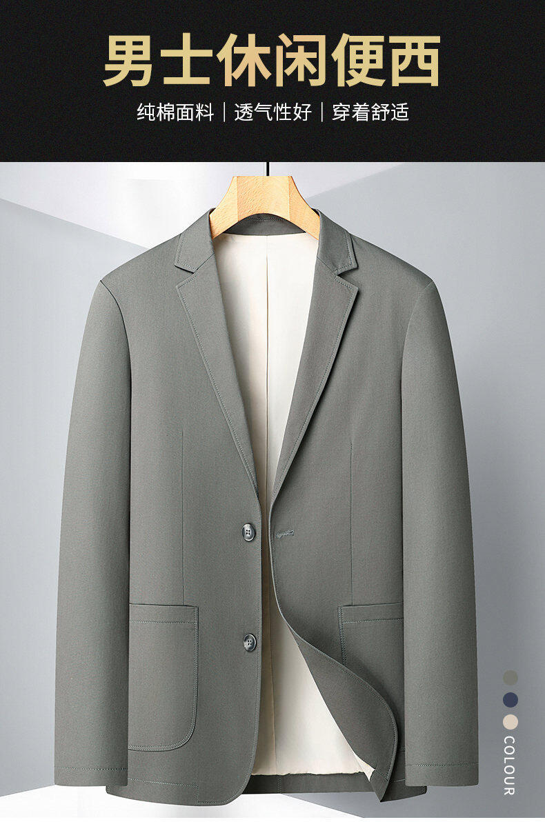 メンズスーツ襟コットンスーツ2025春新作メンズ中年ビジネスカジュアルシンプルで快適コート