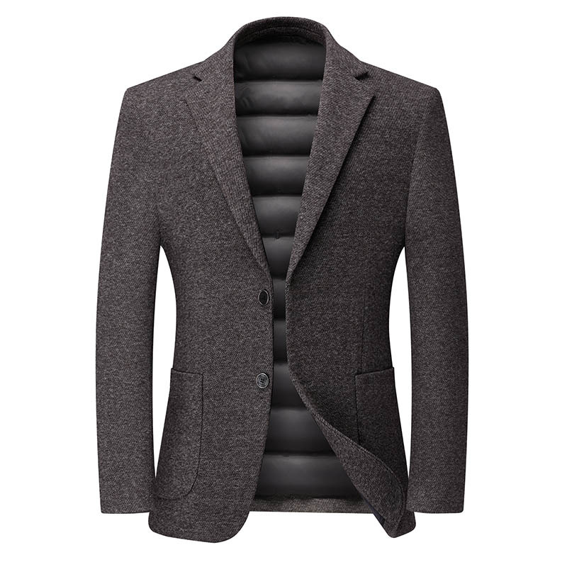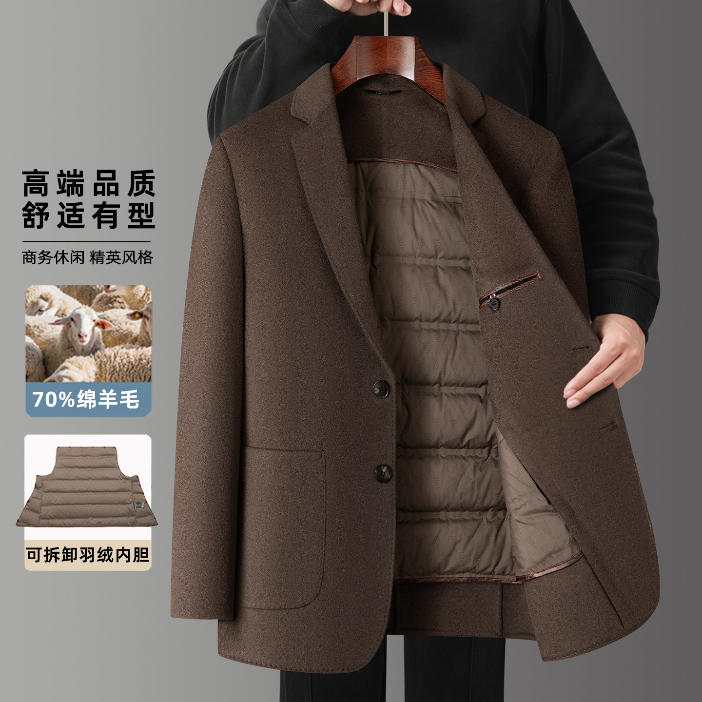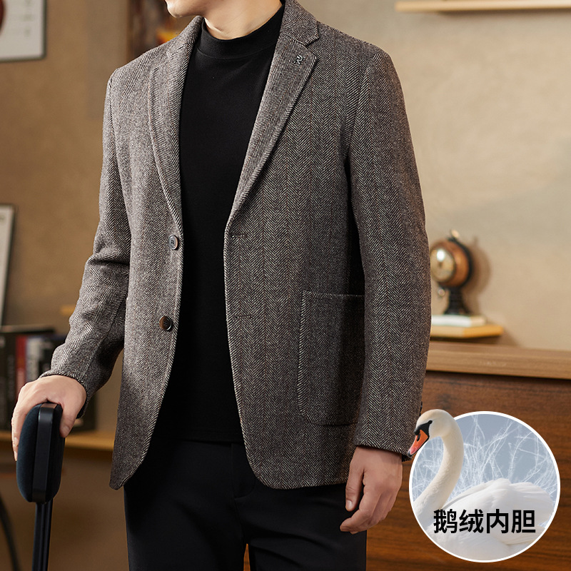 男士羊毛呢西服2025年秋冬新款男装中年商务休闲鹅绒内胆西装外套