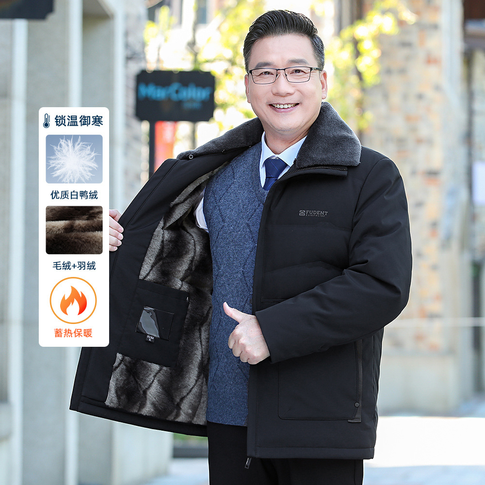 男性はベルベットを厚くして毛襟ダウンジャケットを脱ぐことができる2024冬の新しい男性服の中高年の父親服コート