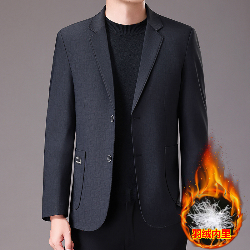 男士80绒西服2025秋冬新款男装中年商务休闲百搭保暖羽绒西装外套