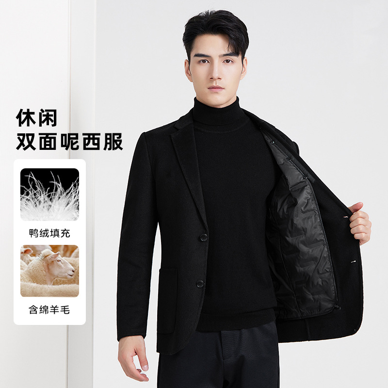 男士双面羊毛呢西服2025年秋冬新款男装中年商务休闲百搭西装外套