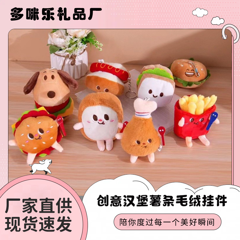 かわいい萌えハンバーガーのストラップのぬいぐるみの寿司ポテトパンの牛角バッグのキーホルダー