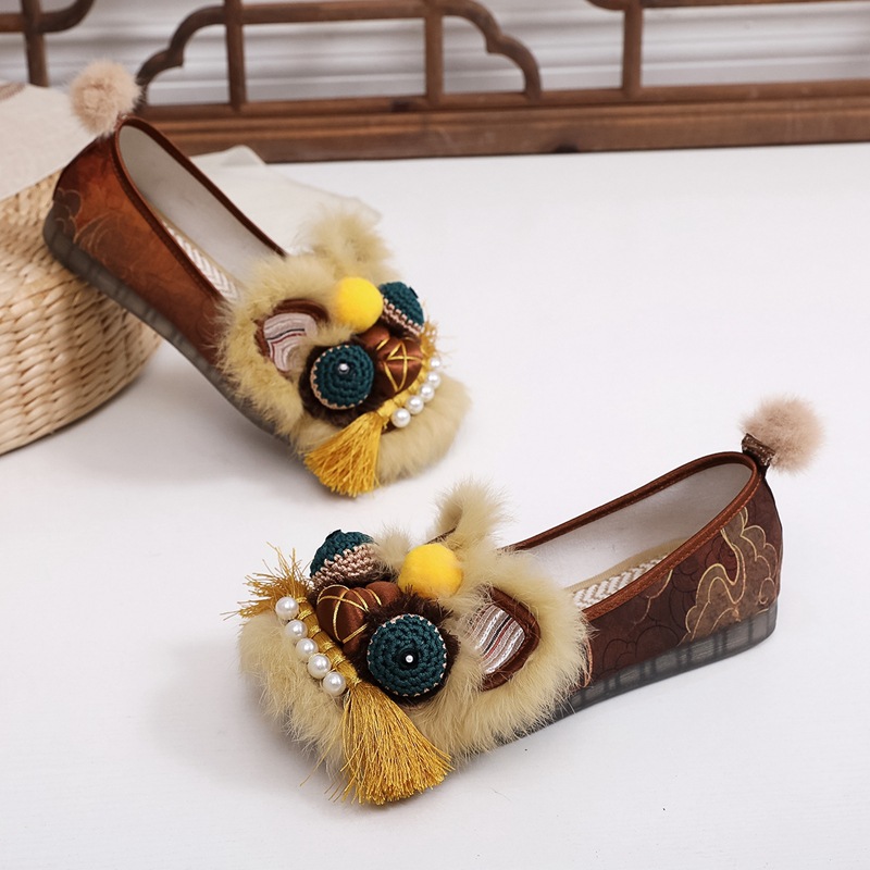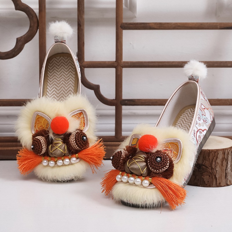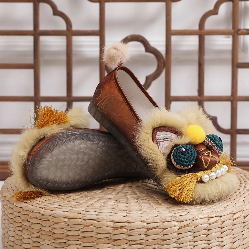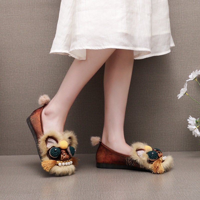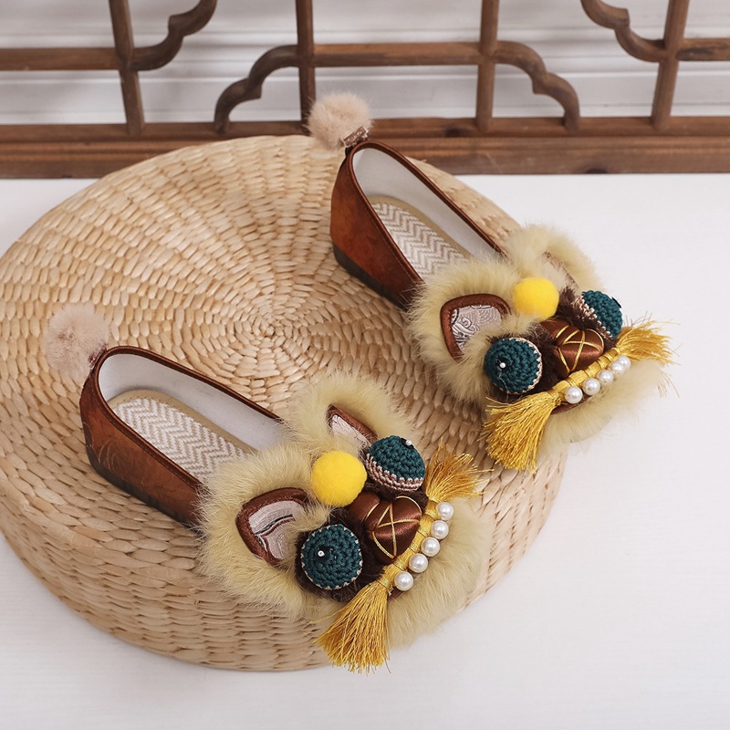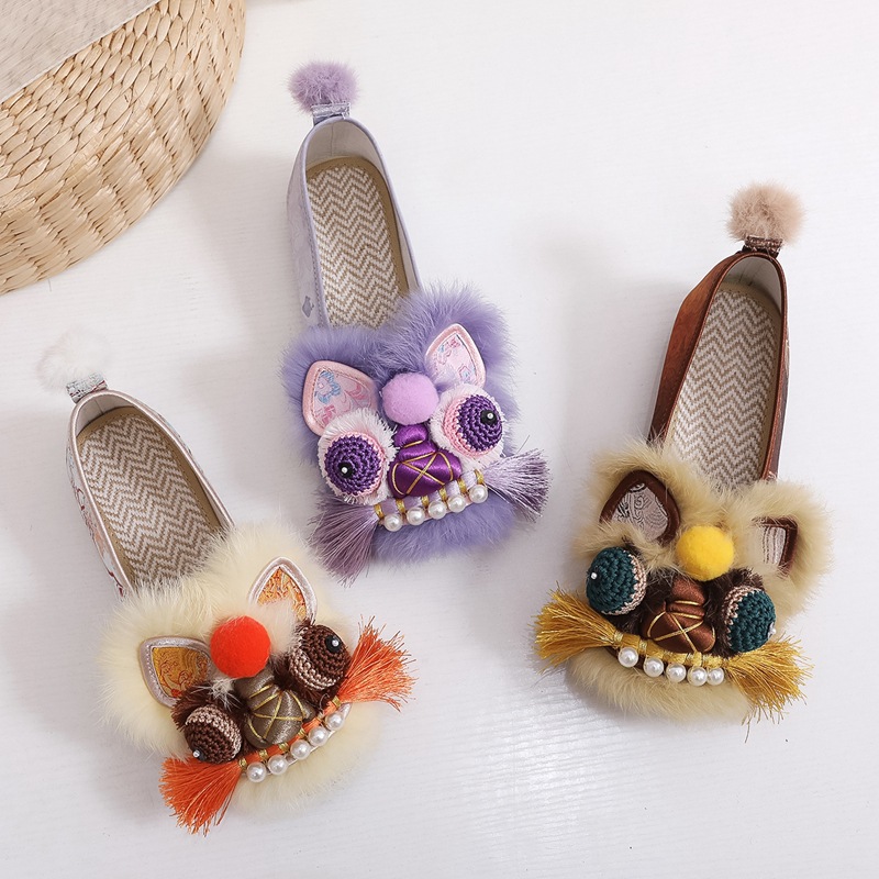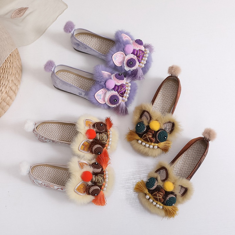 真毛手工原创虎头鞋 2026新款布鞋女平底软汉服新中式重工非遗鞋