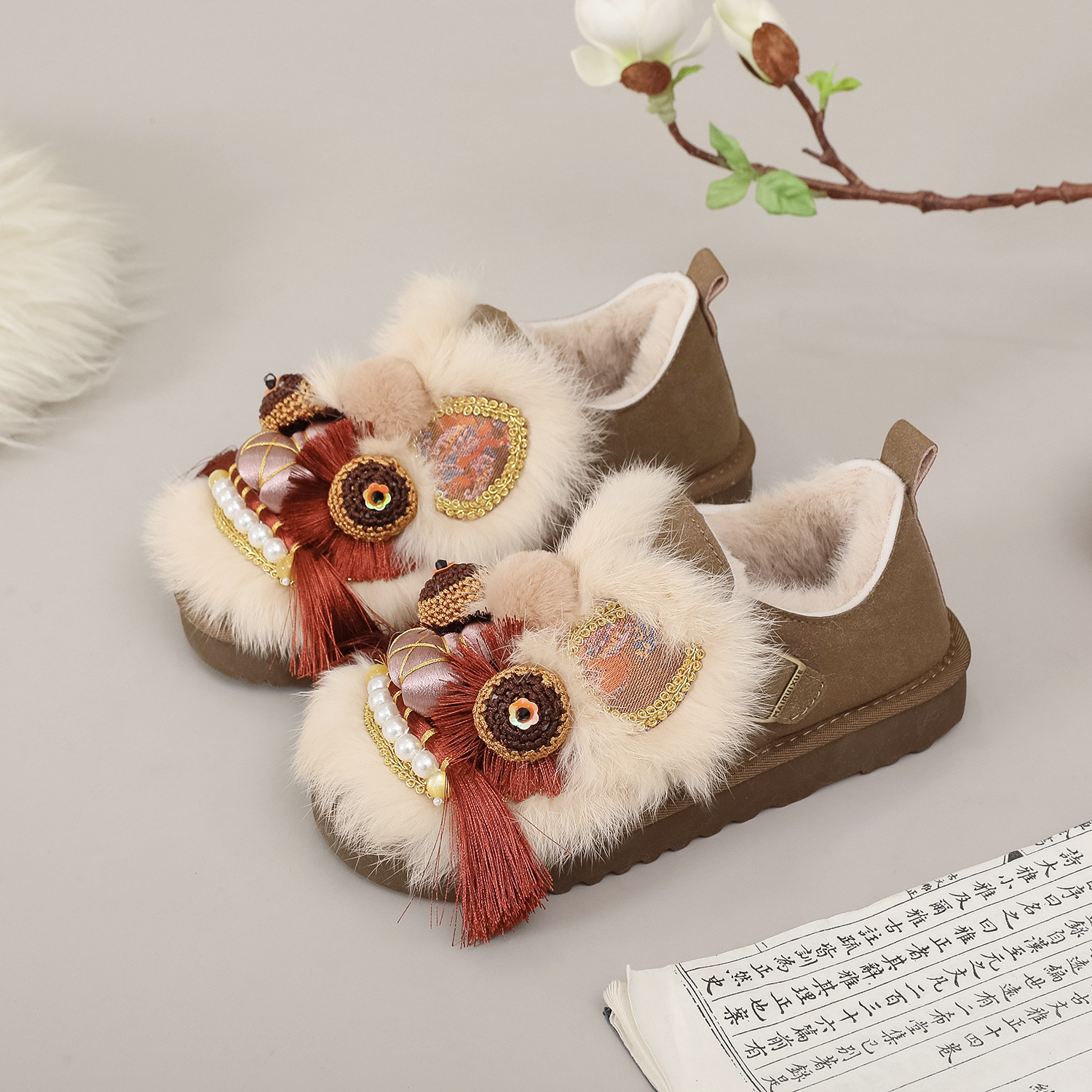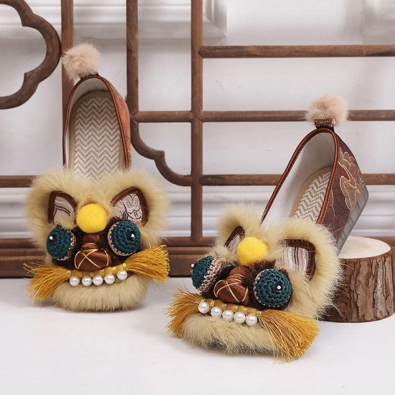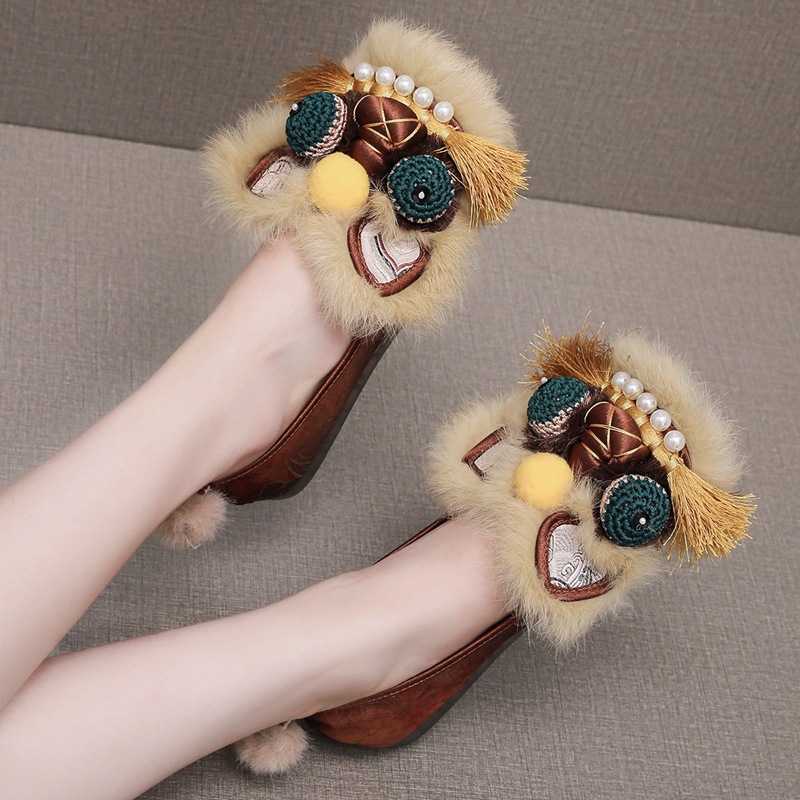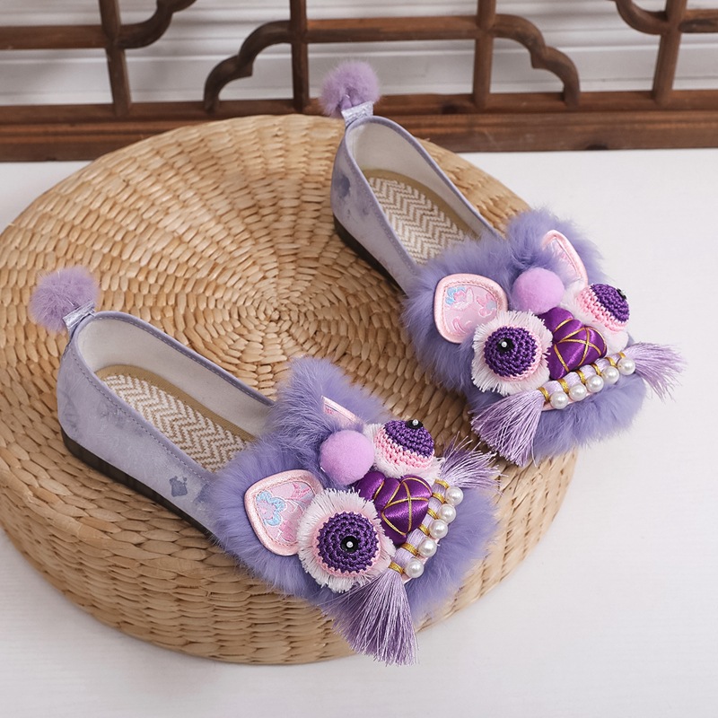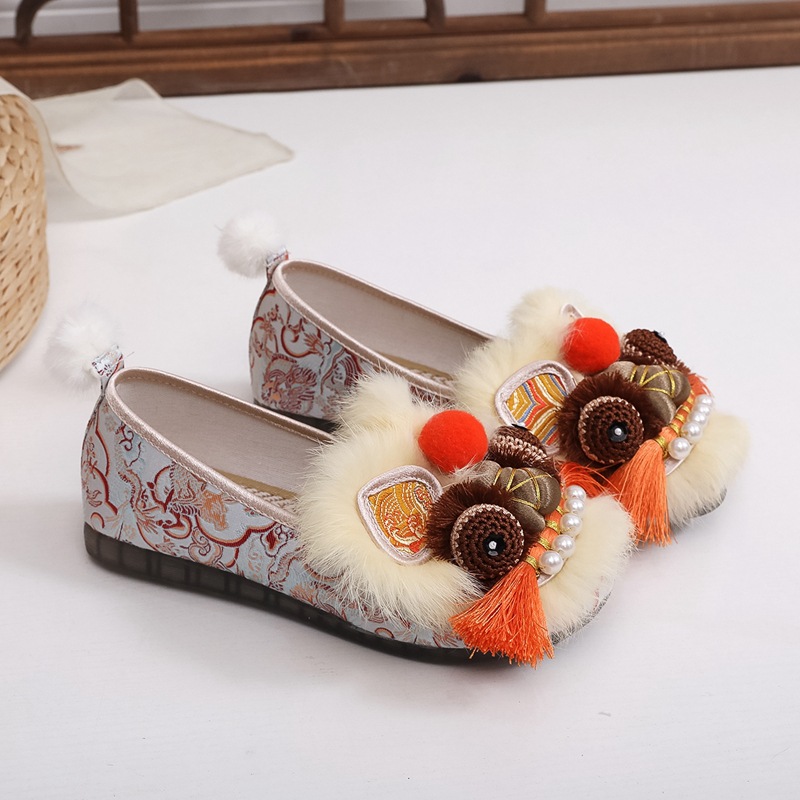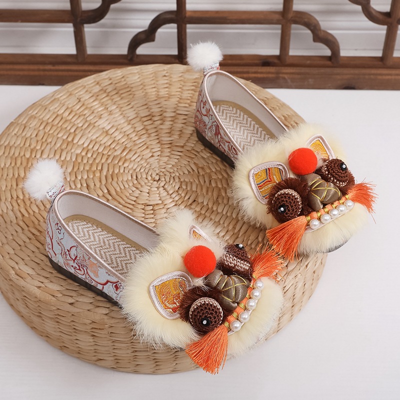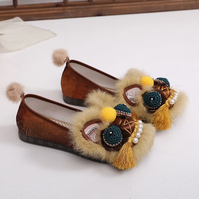 真毛手工原创虎头鞋 2026新款布鞋女平底软汉服新中式重工非遗鞋