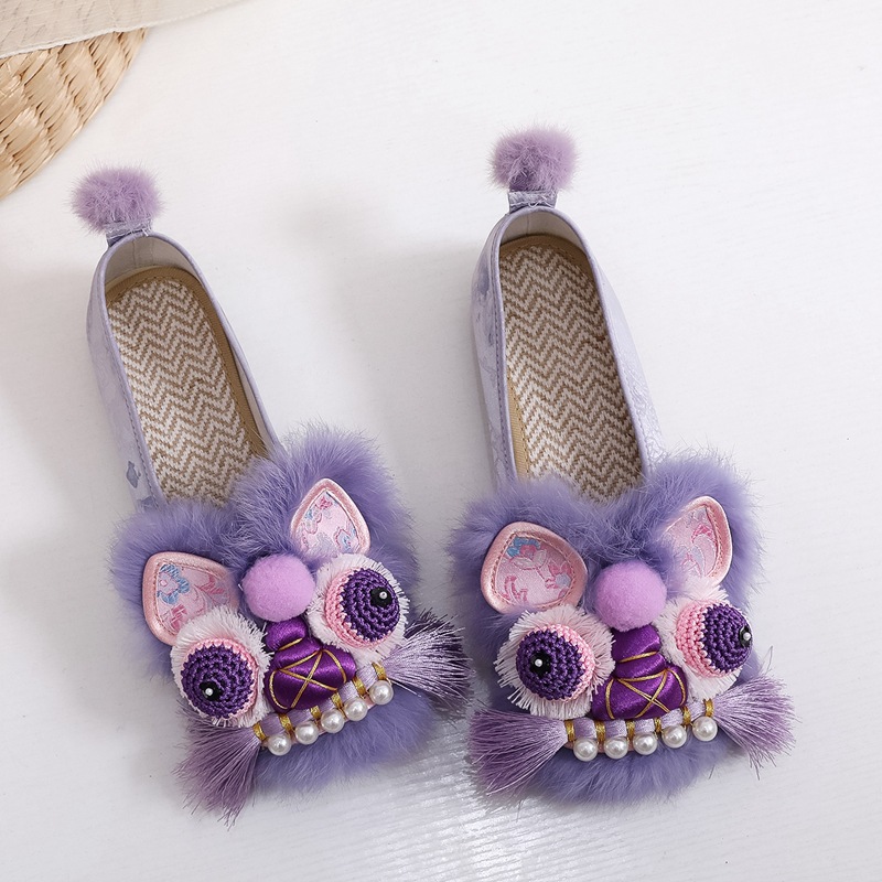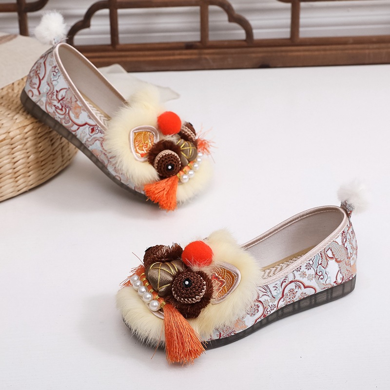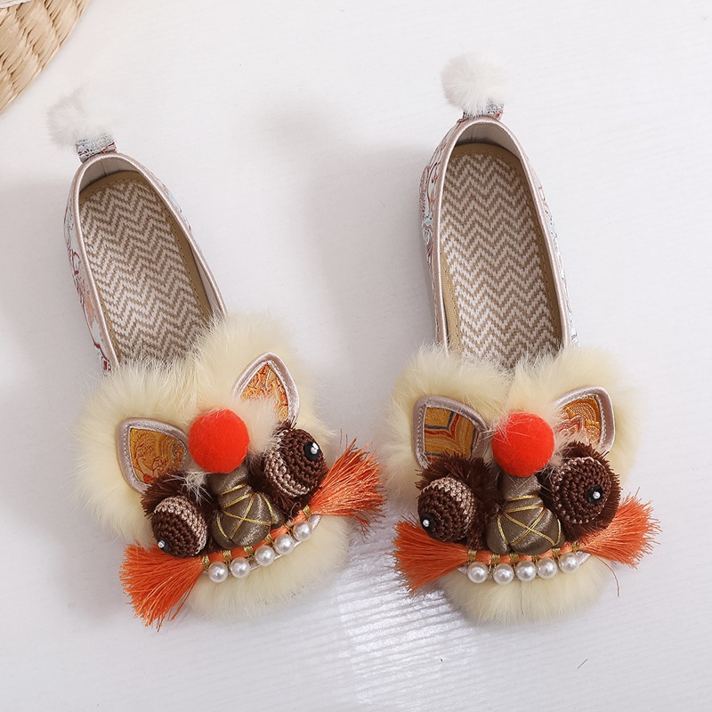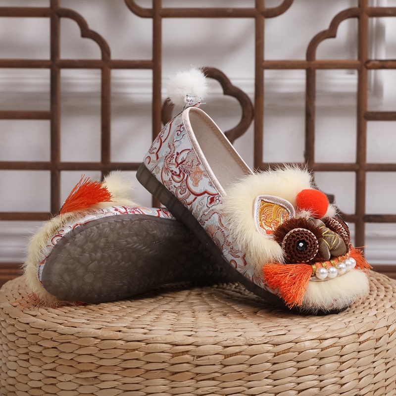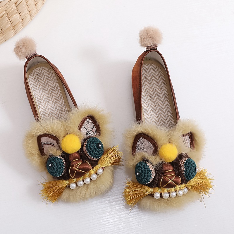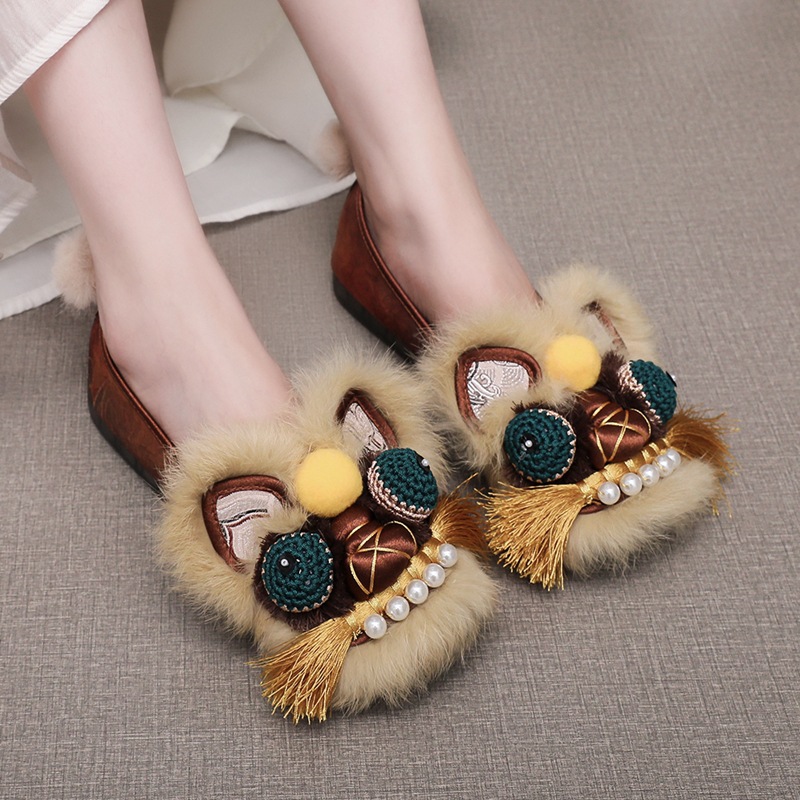 2025春の新型手作り虎頭靴女性兎毛新中国式快適軟底民族風刺繍靴布靴女性