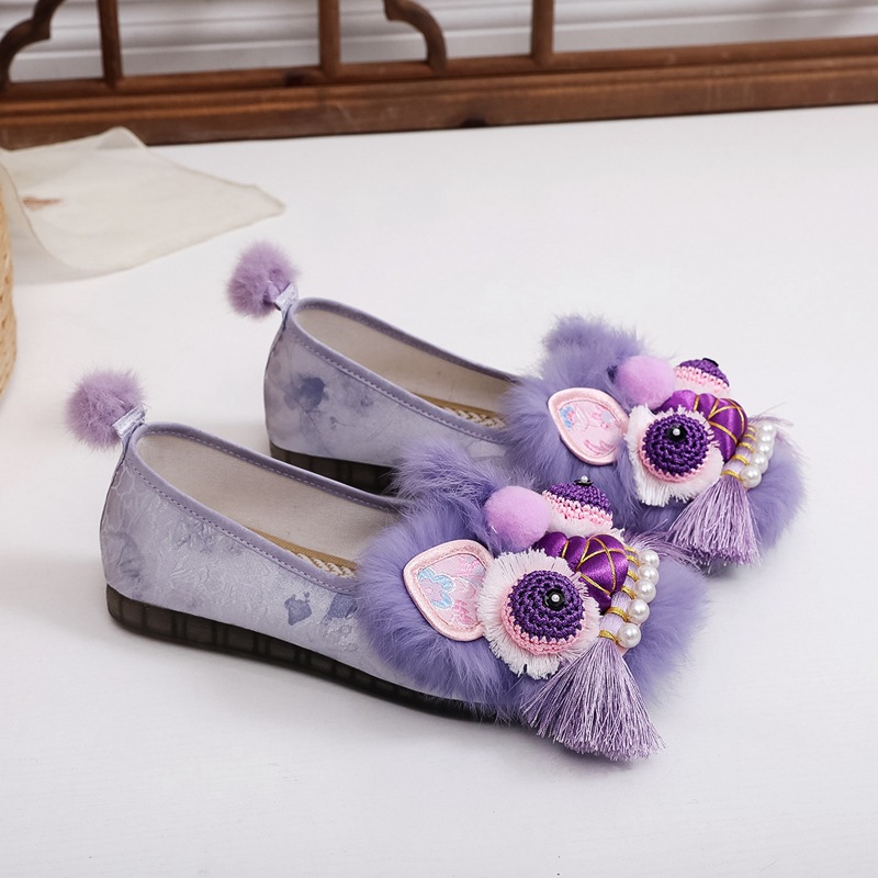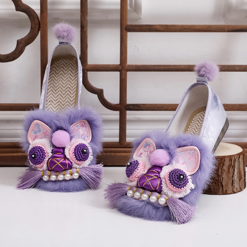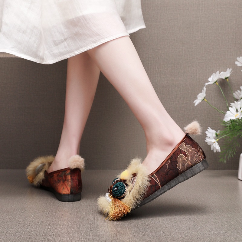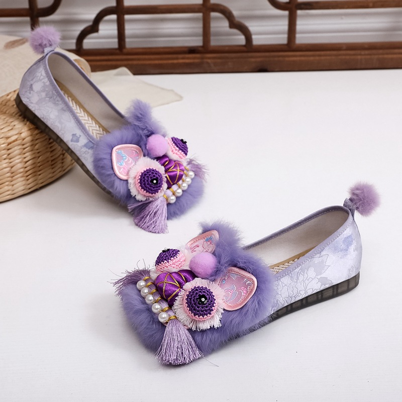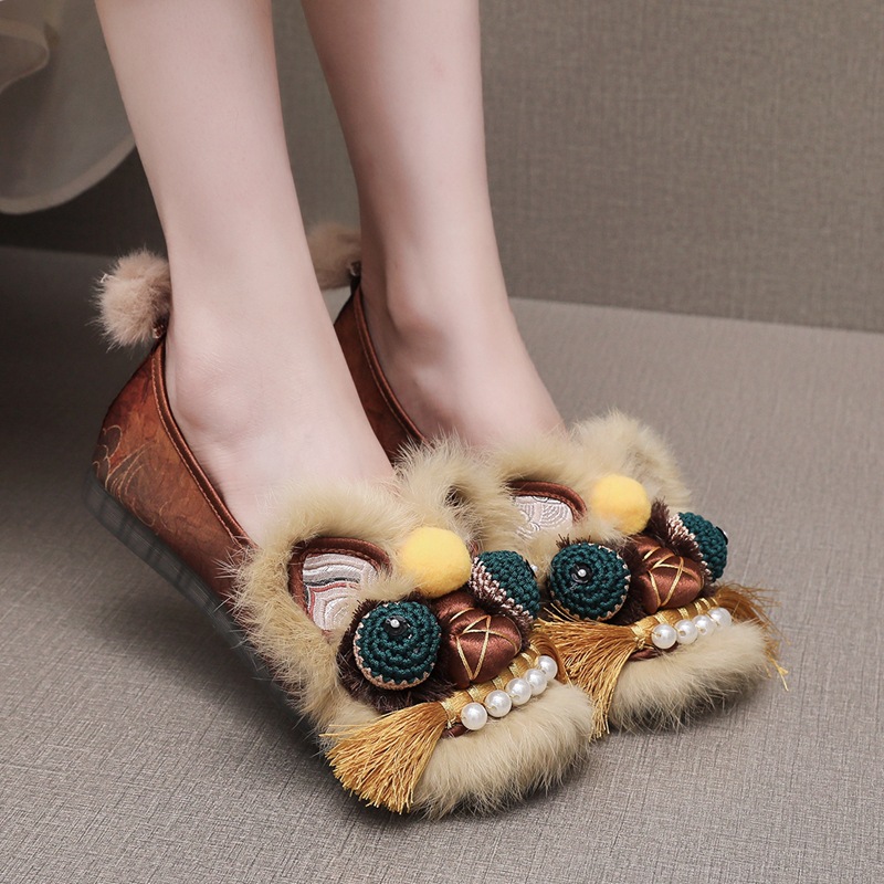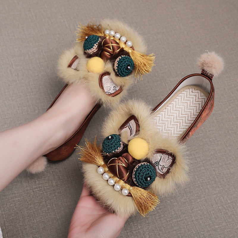 2025春の新型手作り虎頭靴女性兎毛新中国式快適軟底民族風刺繍靴布靴女性